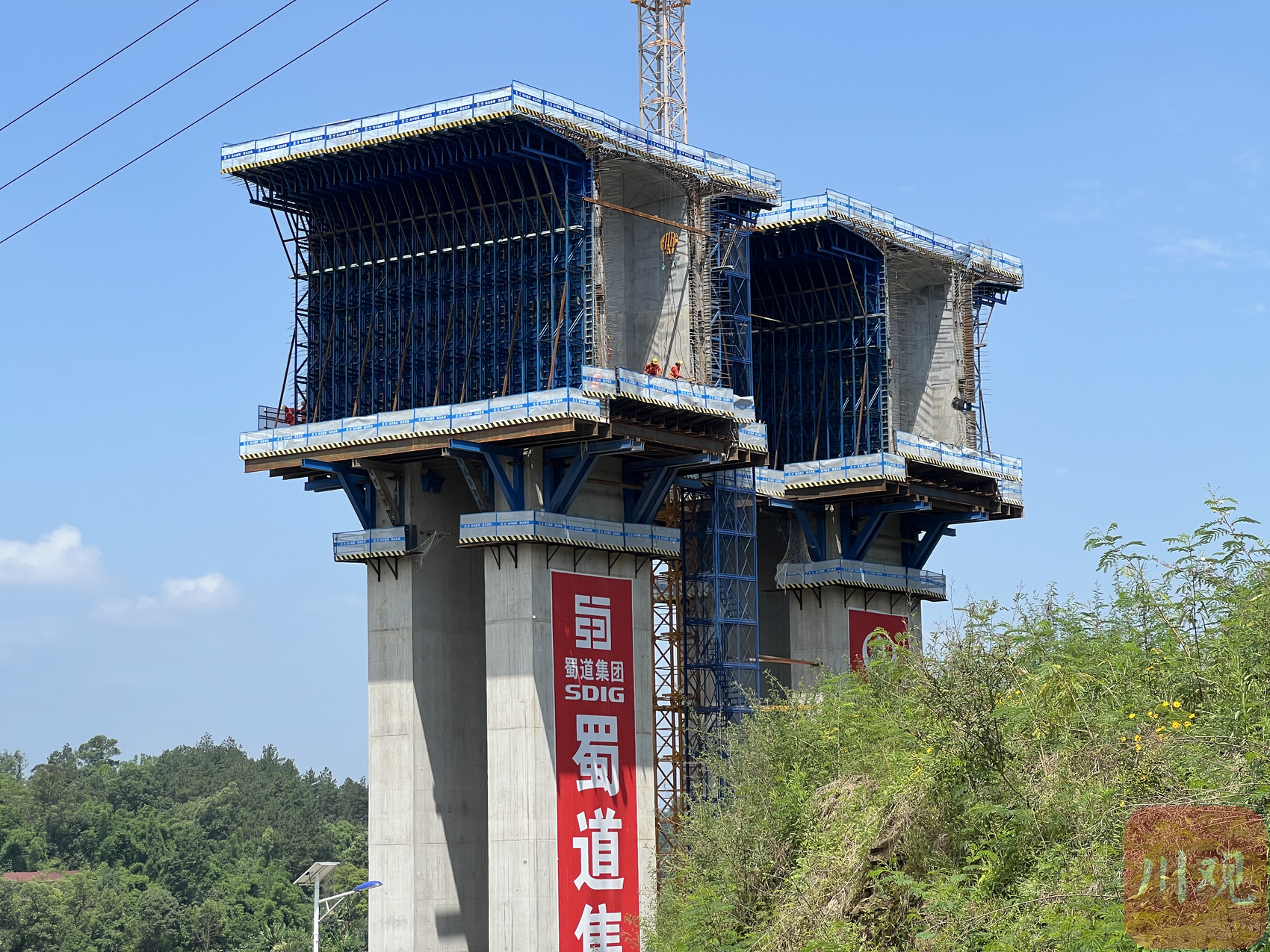 6月5日,“万千气象看四川”二季度集中采访活动报道组来到位于内江资中县铜资高速杨柳滩沱江特大桥项目建设现场,该项目TJ6项目经理廖茂坤指着桥墩上方的方形水泥体说,“目前大桥的4个‘0#块’已经浇筑完成。”这意味着杨柳滩沱江特大桥已经进入“桥面铺设”建设阶段。
