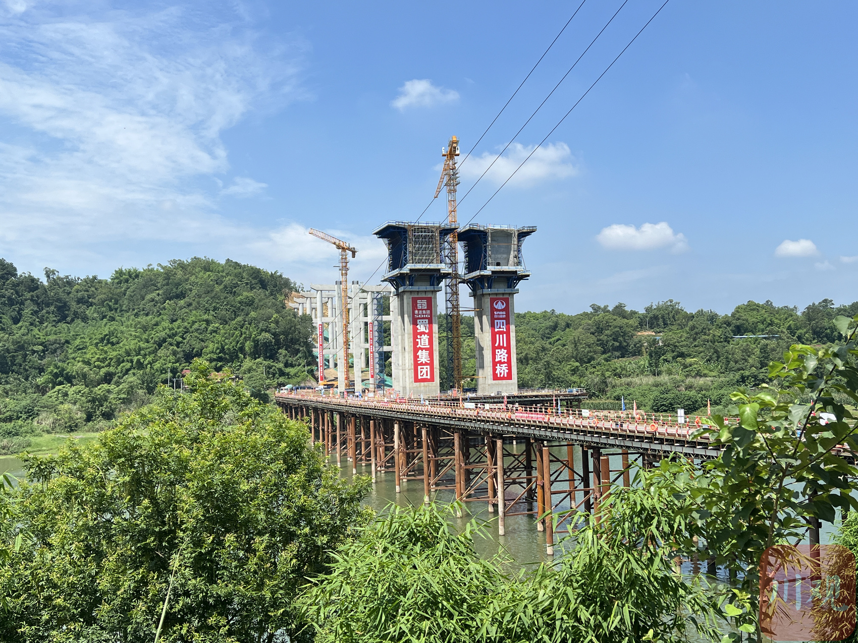 内江资中县铜资高速杨柳滩沱江特大桥项目建设现场。
