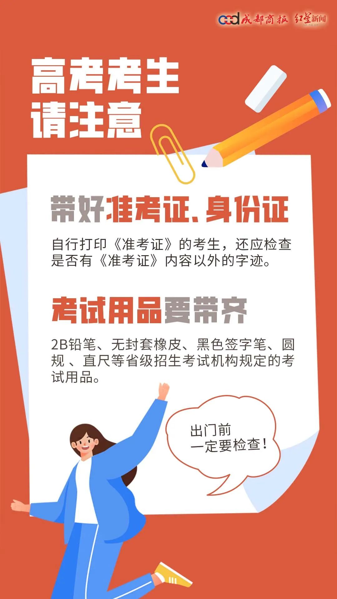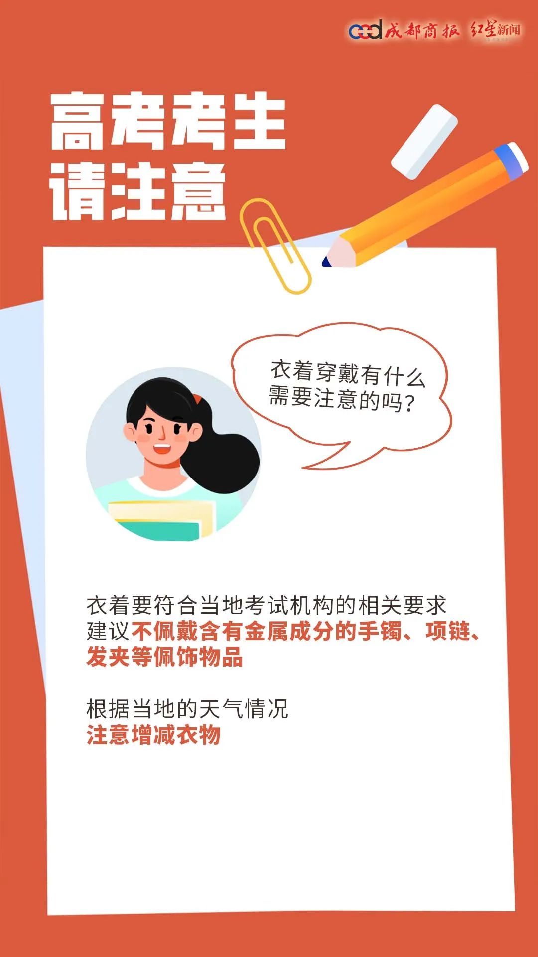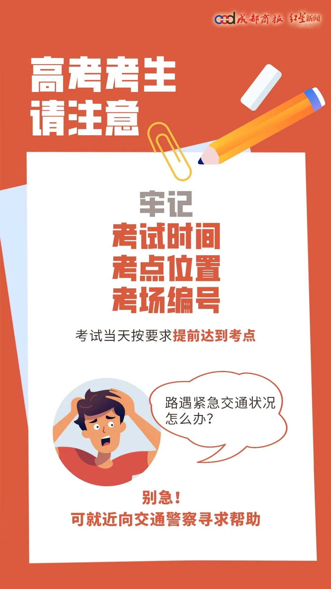 成都天气方面,预计高考期间 ,早晚多分散降雨。其中6日夜间至7日早晨有小到中雨,大家需要关注7日早晨降雨对早高峰出行带来的影响。