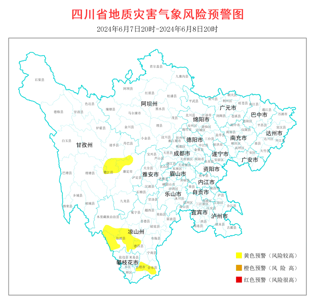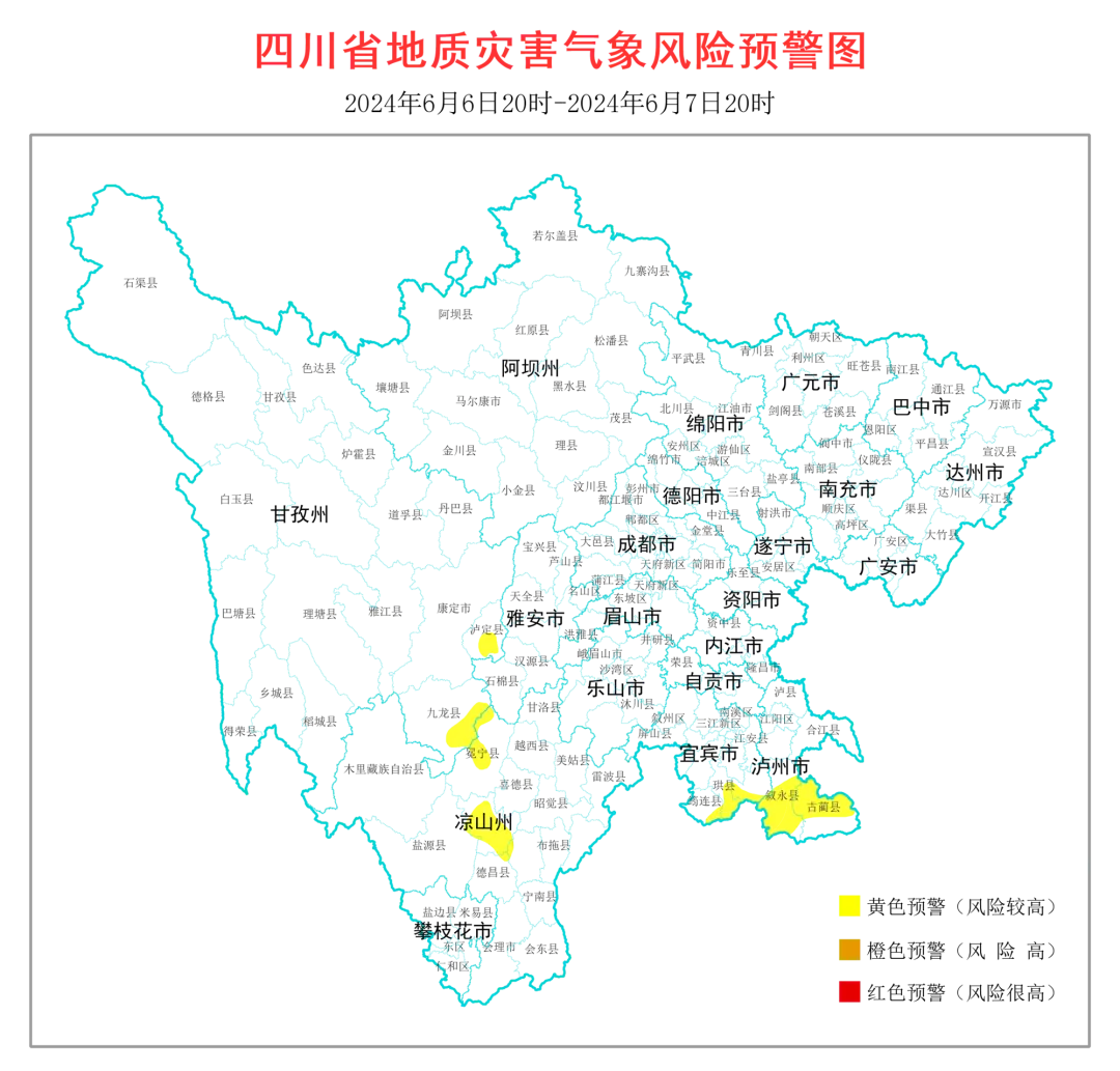 根据四川省气象台天气预报情况,结合四川省地质环境条件,四川省地质灾害指挥部办公室制作发布2024年高考及端午期间地质灾害气象风险专题预警,详情如下: