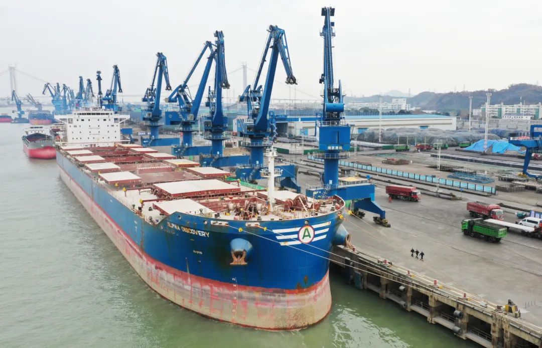 靠泊南京港的利比里亚籍“阿尔法发现”轮吃水深度11.6米,刷新南京港接靠船舶最大吃水历史纪录。