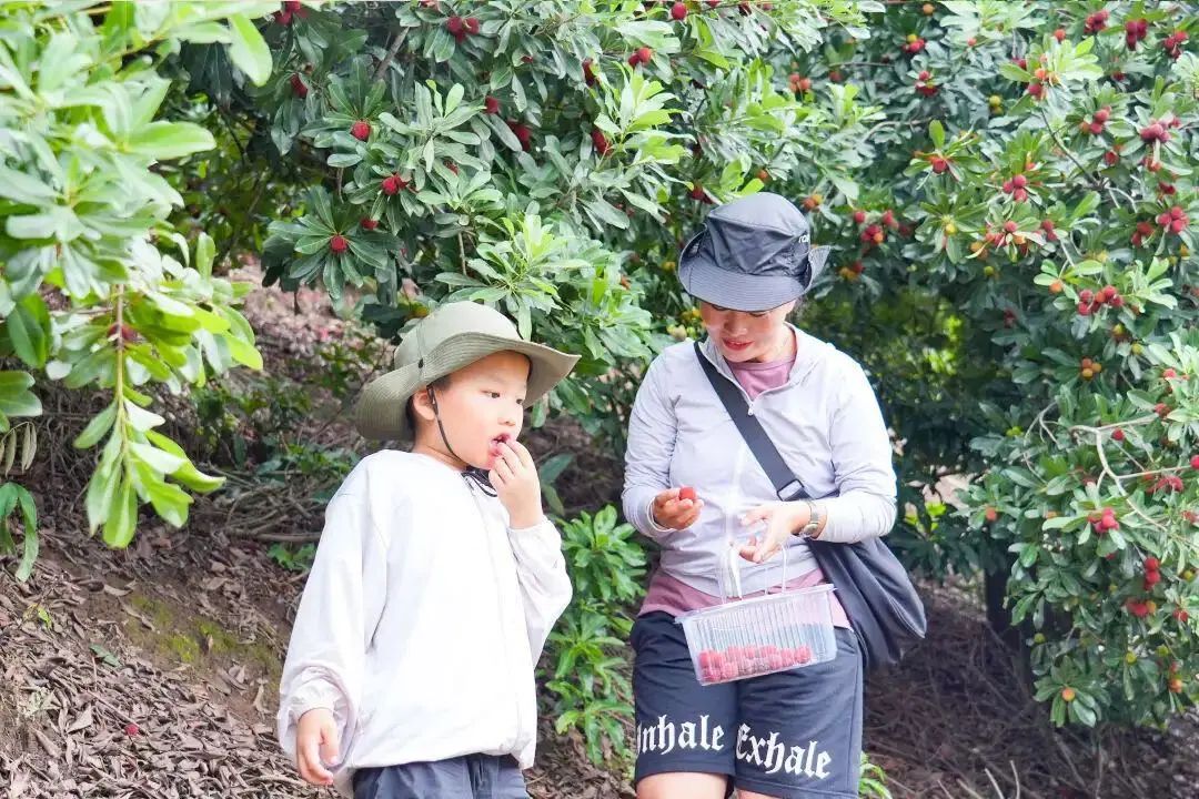 走进龙塘自然村杨梅园,枝叶交错间,一颗颗、一簇簇红黑相间的果实挂满枝头,令人垂涎欲滴。摘下一颗放入口中,恰到好处的酸与甜,瞬间在口中激荡起层层涟漪,让人欲罢不能。