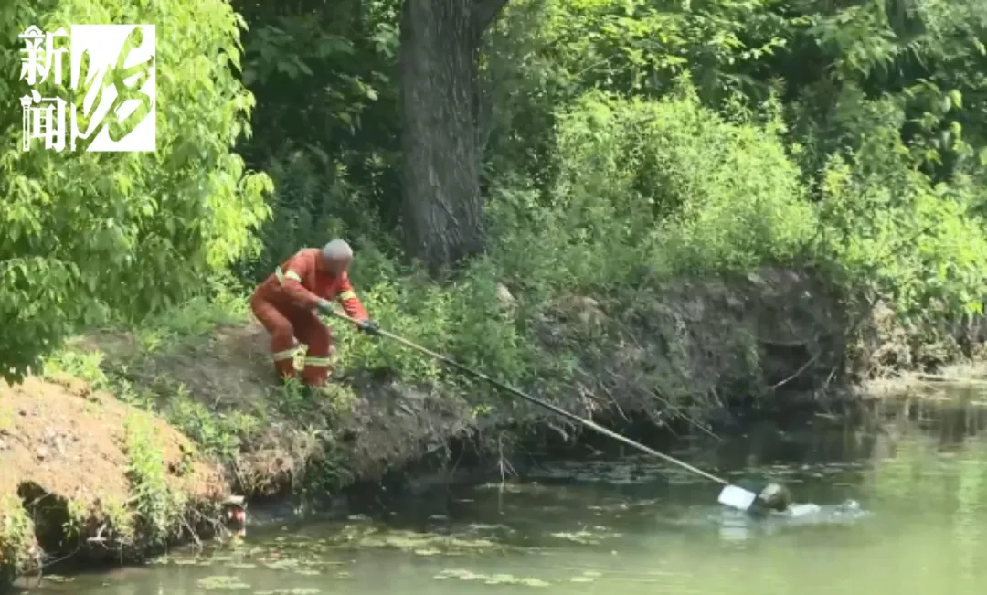 在水环境管理上,工作人员正在河道上进行漂浮物打捞作业,保证河面干净整洁。