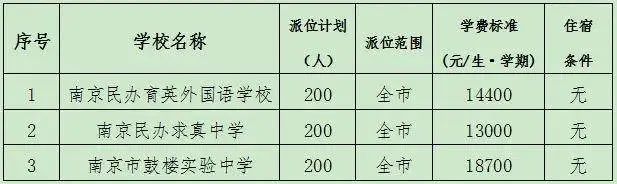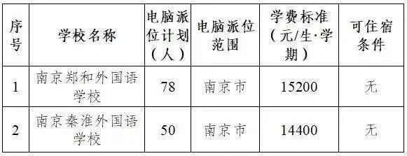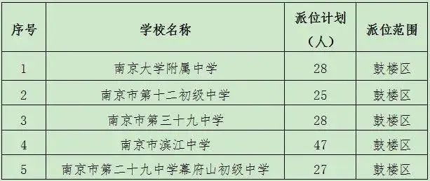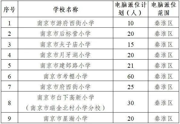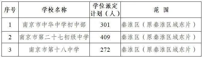 秦淮区(原秦淮区域)公办初中学位派定计划
