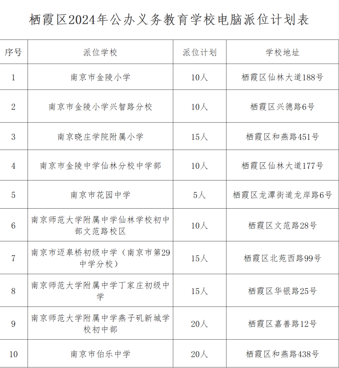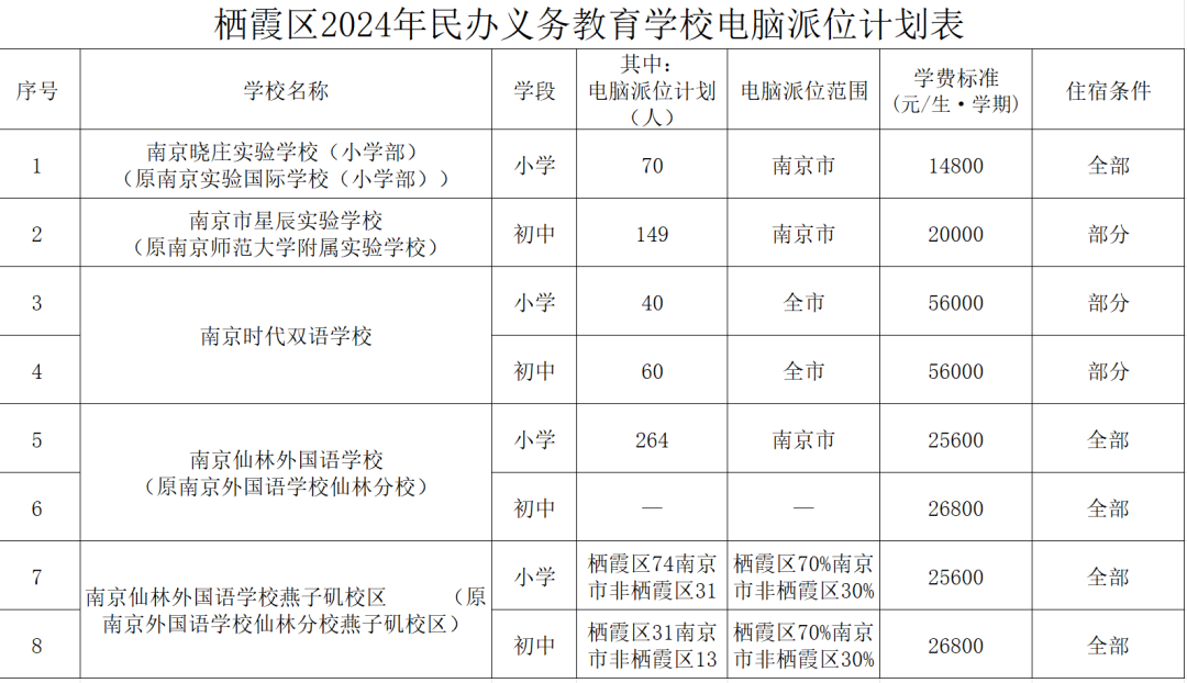 6月5日,南京市各区陆续发布2024义务教育阶段民办校及热点公办校电脑派位学校和计划。根据教育部门安排,6月7日—6月8日,小学毕业生填报小升初电脑派位志愿。6月15日—6月16日,小学新生填报电脑派位志愿。
