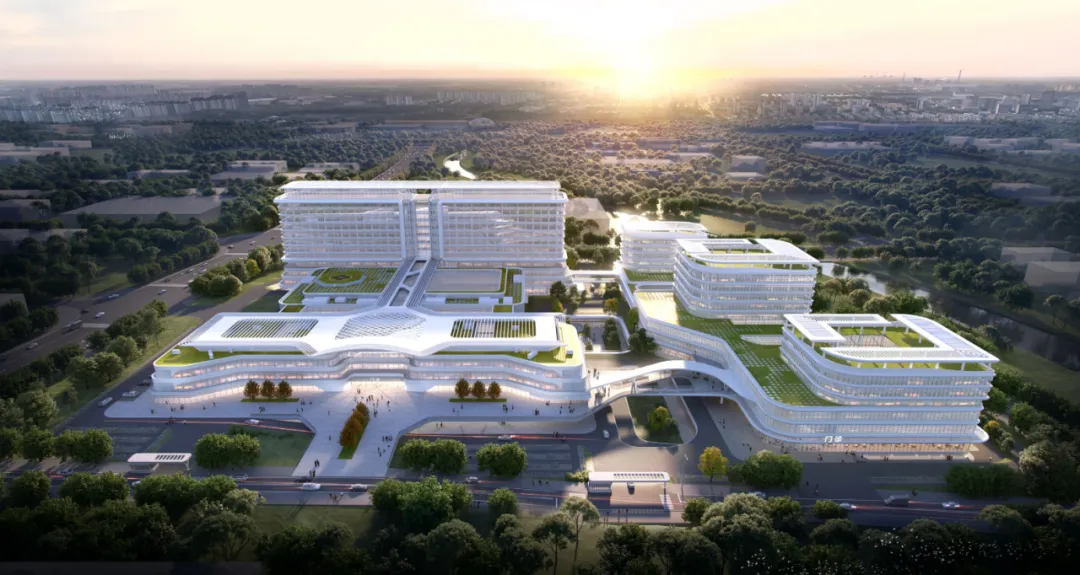 青岛大学医学医疗中心项目位于西海岸新区王台街道茂山路以南、环台东路以东,总占地面积约1113亩,分两期建设。其中,一期项目占地约118亩,规划建筑面积28.58万平方米,主要按照三级甲等医院标准,规划建设1所“大专科、小综合”的青岛大学附属心血管病医院和1所口腔医院,打造集教学、实践、预防、保健、诊疗、科研转化为一体的综合医学中心,项目于2023年9月开工建设,计划2026年建成使用。整个项目建成后,将为青岛大学建设国内一流医学医疗中心奠定坚实的基础。