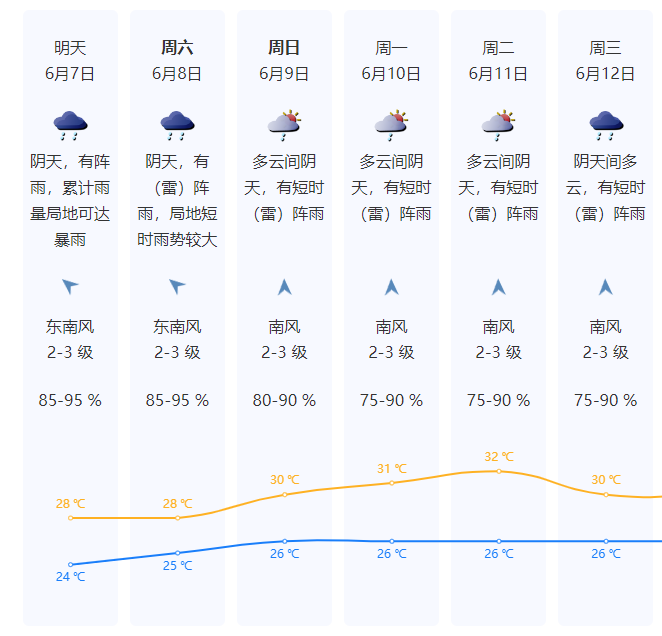 2、端午假期期间需防范局地强降水和雷暴对龙舟竞渡、滨海旅游、海上作业、海陆交通等造成的影响。