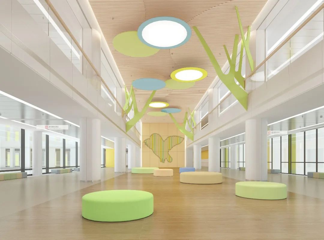 医疗主街作为该院“神经中枢”,贯穿每层,上下联通,将所有建筑功能进行了竖向与水平的串联。交通流线简单明晰,在满足医疗流程高效的同时,也能避免迷路给儿童带来的恐惧感。医疗主街中同时增加轻松的等待空间,通过视觉上有趣的设计来缓解孩子们的压力。