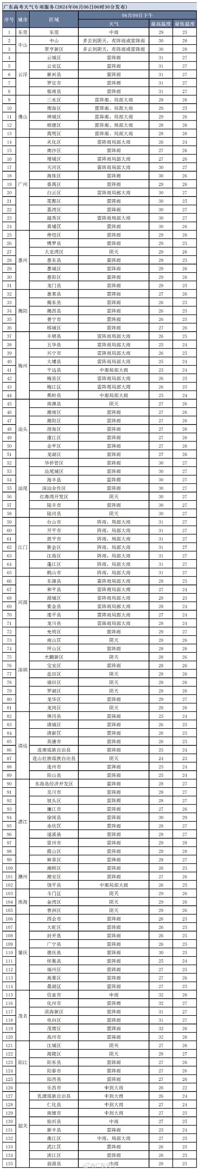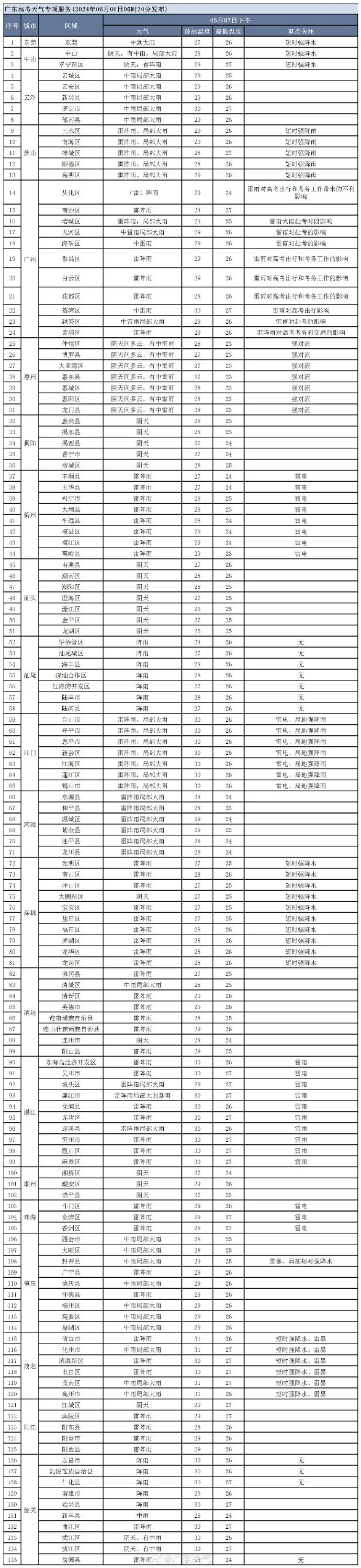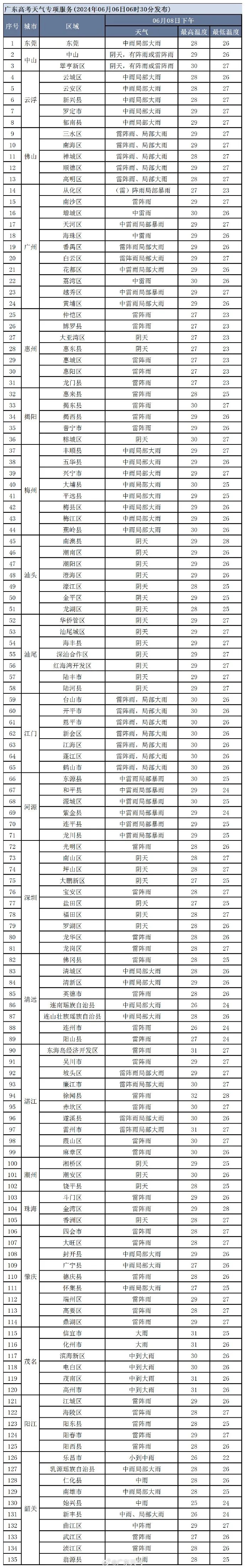 2024年广东考场天气预报