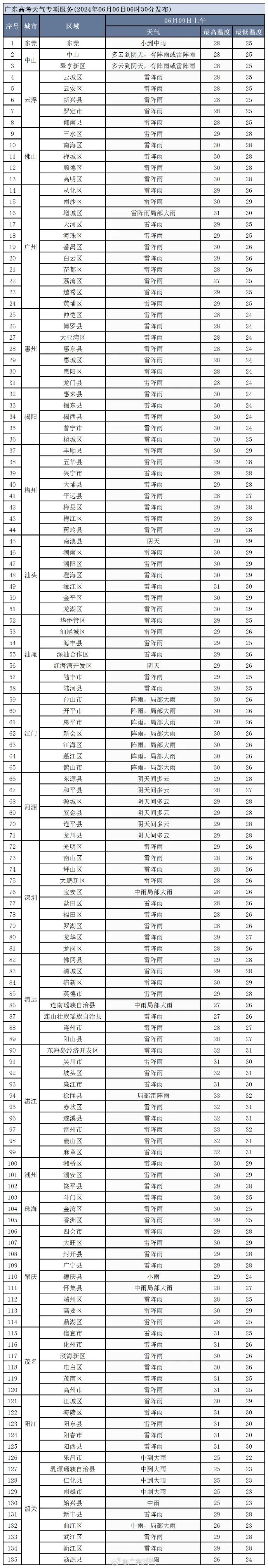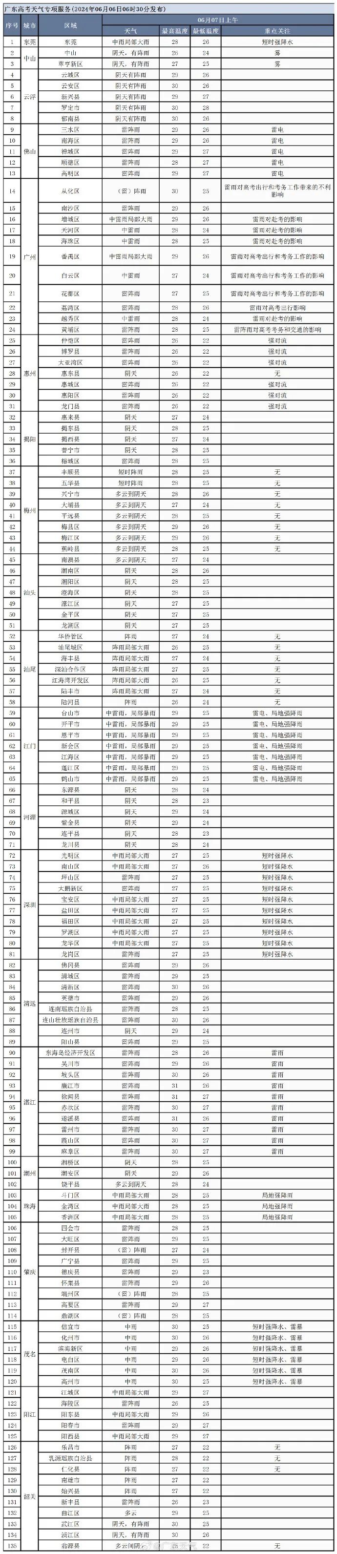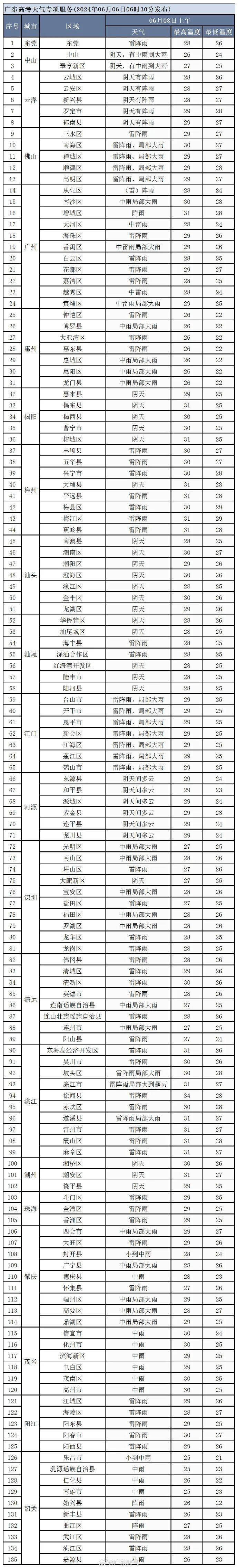 2024年广东考场天气预报
