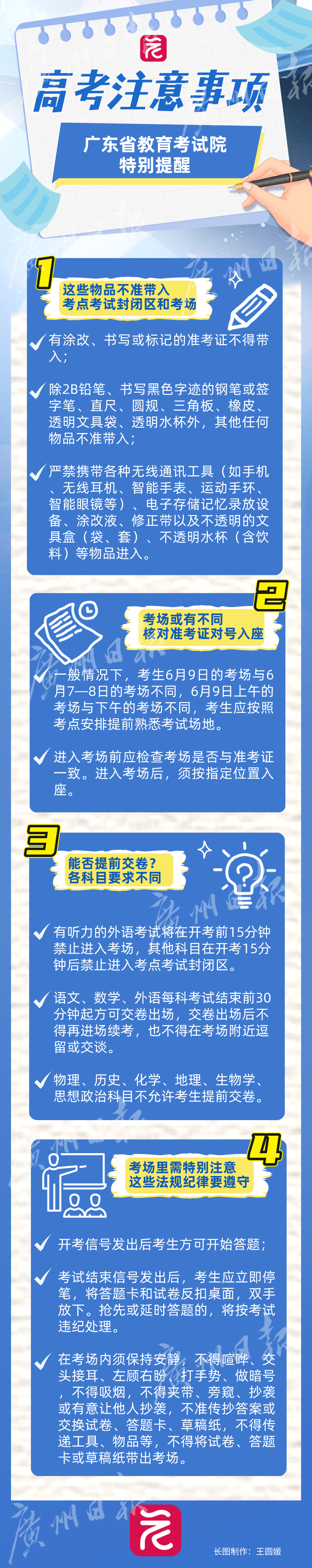 广东省2024年普通高校招生全国统一考试(简称普通高考)将于6月7至9日举行。6月6日早上,省教育考试院向广大考生发出特别提醒。