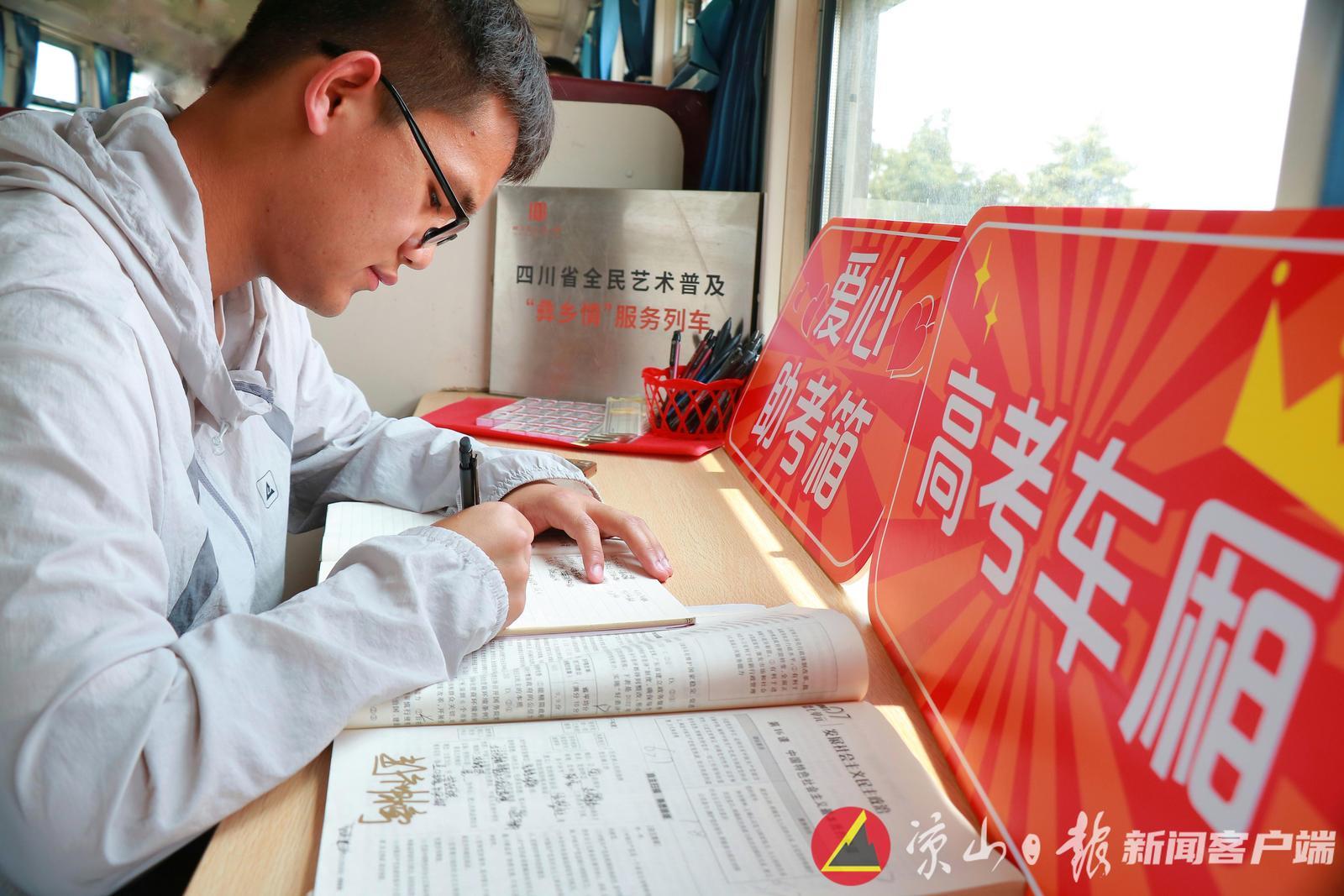 看到熟悉的“学习车厢”摇身一变成了“高考车厢”,喜德县民族中学的考生阿呷尔洁:“我想上一个二本学校,去到自己想去的城市。”正在读高二的学生阿衣莫说:“祝愿哥哥姐姐们都能超常发挥,考上自己心仪的学校。明年我也要参加高考了,希望到时候自己也能成功上岸。”