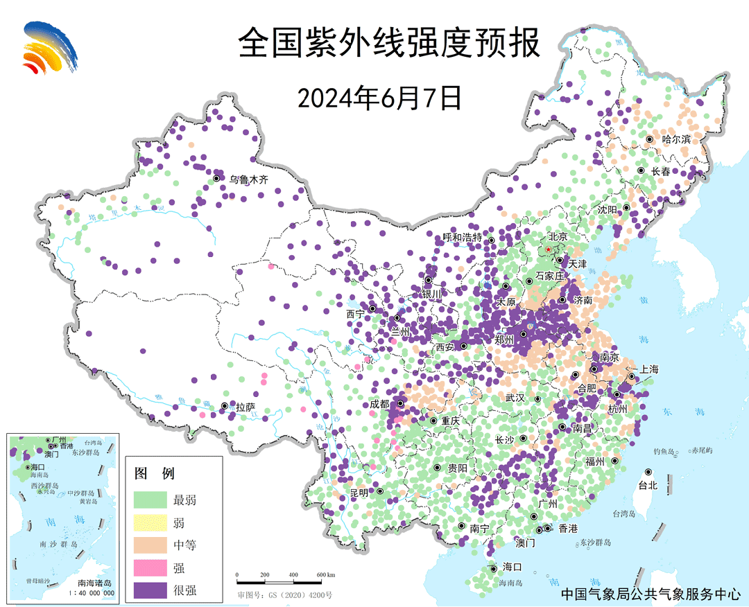据全国紫外线强度预报显示,高考期间,华北、东北地区南部、华东地区中部和北部、华中地区中部和北部、西南地区东部、西北地区的部分地区及内蒙古、新疆、西藏大部等地紫外线强度很强。北方大部地区紫外线较强,户外陪考家长及考务工作者需注意防晒。