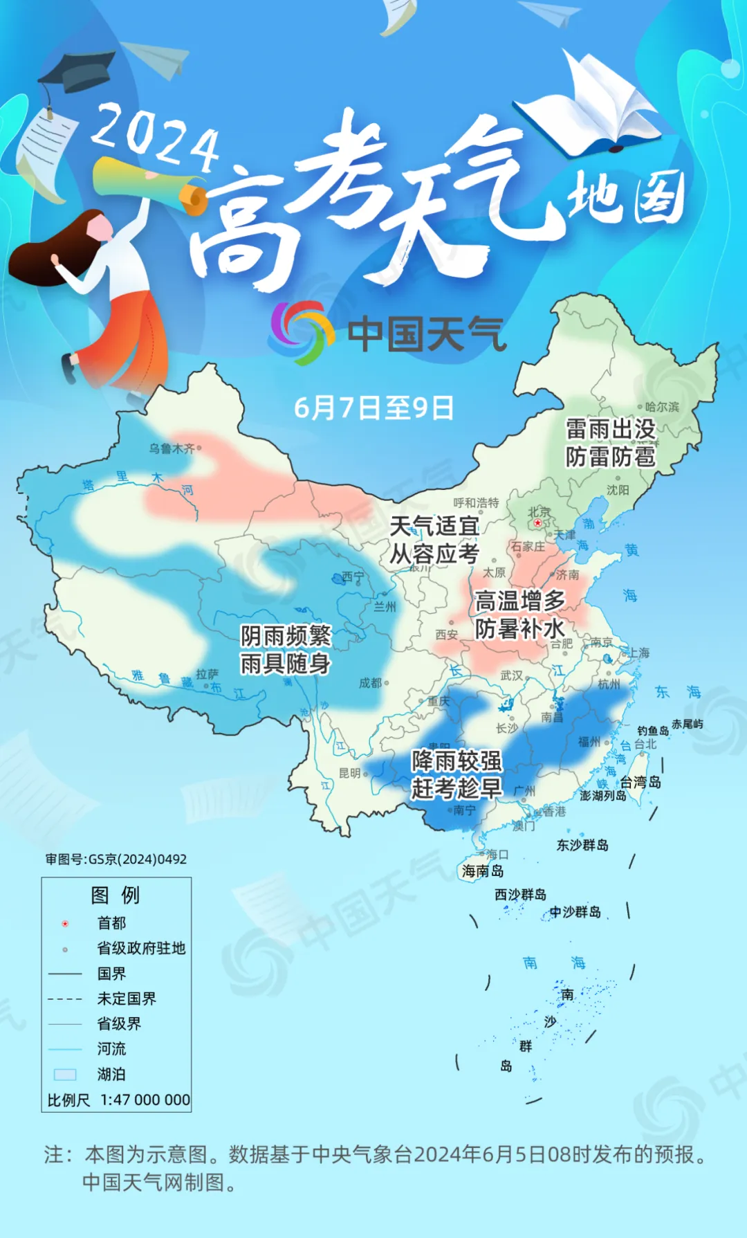 在降雨较少的西北地区东部、内蒙古中部、江南北部、江淮、西南地区等多地,天气适宜,有利于考生发挥。