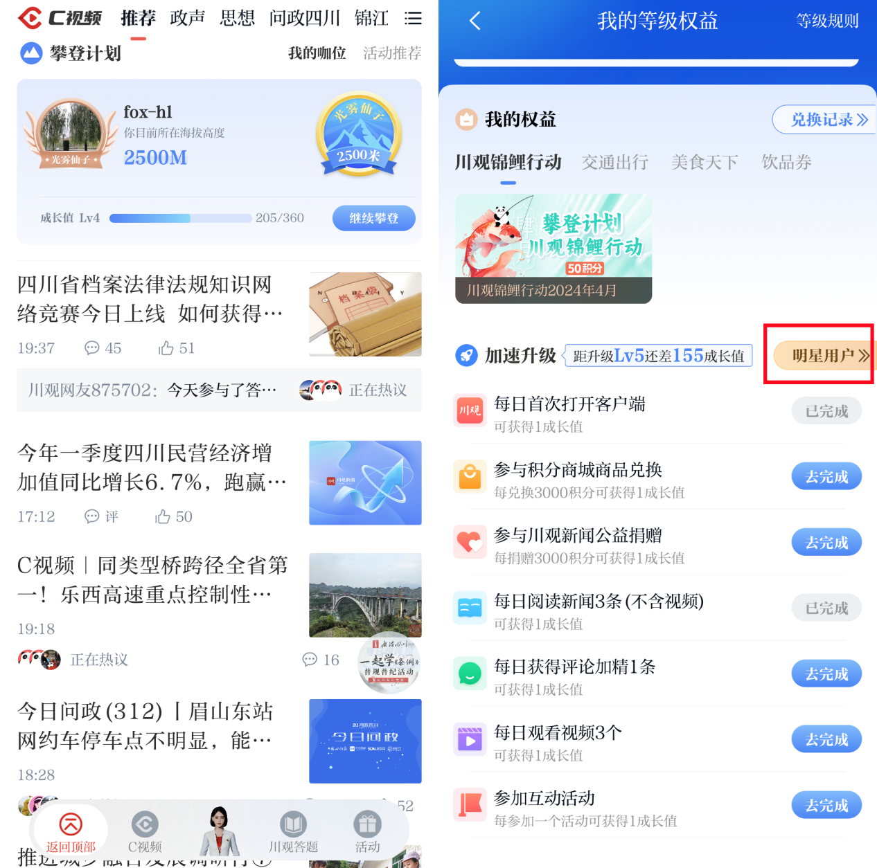 川观网友“139****731243”是来自资阳的马先生,他早在几年前就下载了川观新闻。“工作忙时偶尔看看,上个月看川观的时间就相对多一点。”马先生说,自己是摄影爱好者,最喜欢看的栏目是“C视觉-每日一图”,透过图片看世界,感受大千世界的精彩。“我一直想加入你们的‘川观拍客’,等时间充裕点,我得好好谋划谋划。”