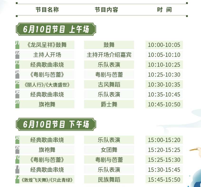 6月10日9:00-12:00:标准龙公开赛及颁奖;14:00-16:00:传统龙公开赛及颁奖
