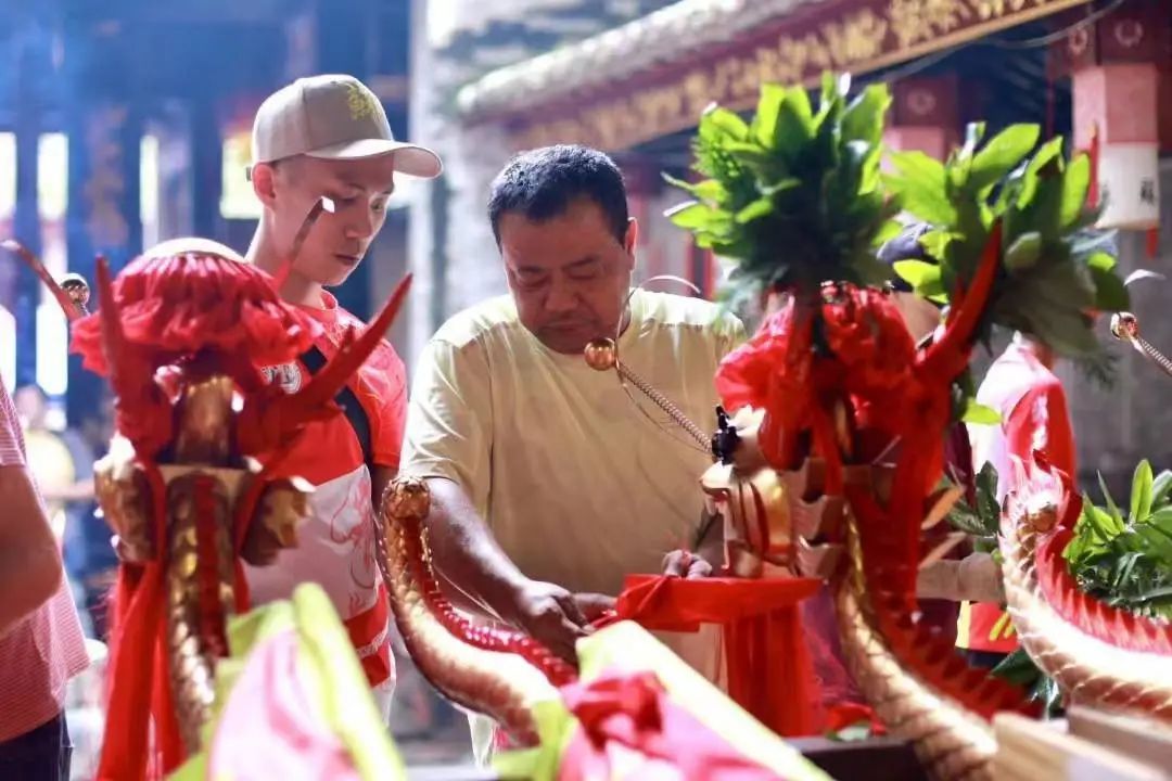 每逢端午临近,农历四月初八之后,村民会选择良辰吉日把龙舟从水里打捞起来,即“起龙”。在进行传统的祭拜仪式后,参与“起龙”的村民跳入水塘,先将龙舟坞开闸放水,使龙舟两端渐渐浮出水面。随后,村民们把船身的淤泥等杂物清理干净,再将龙头龙尾装上。