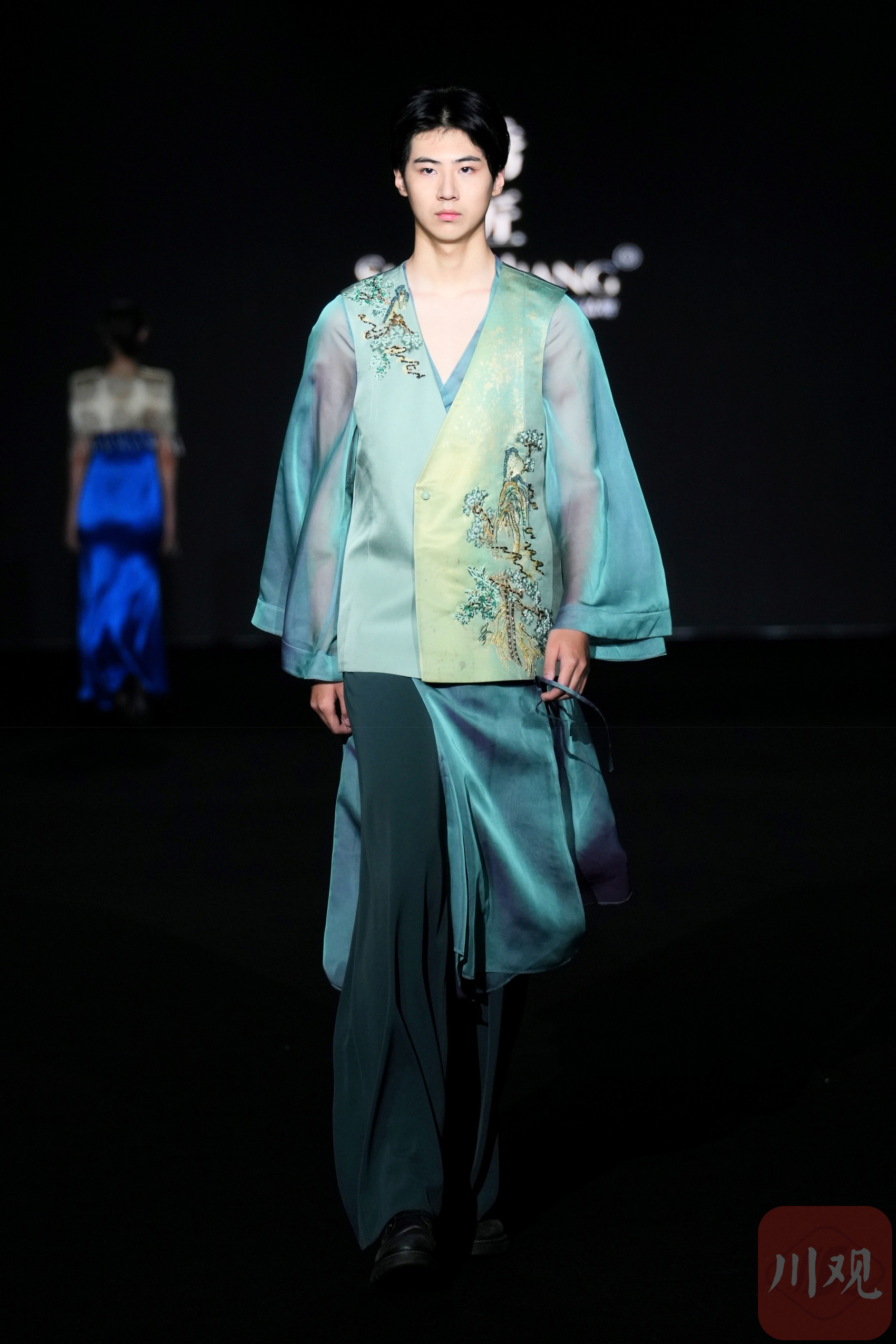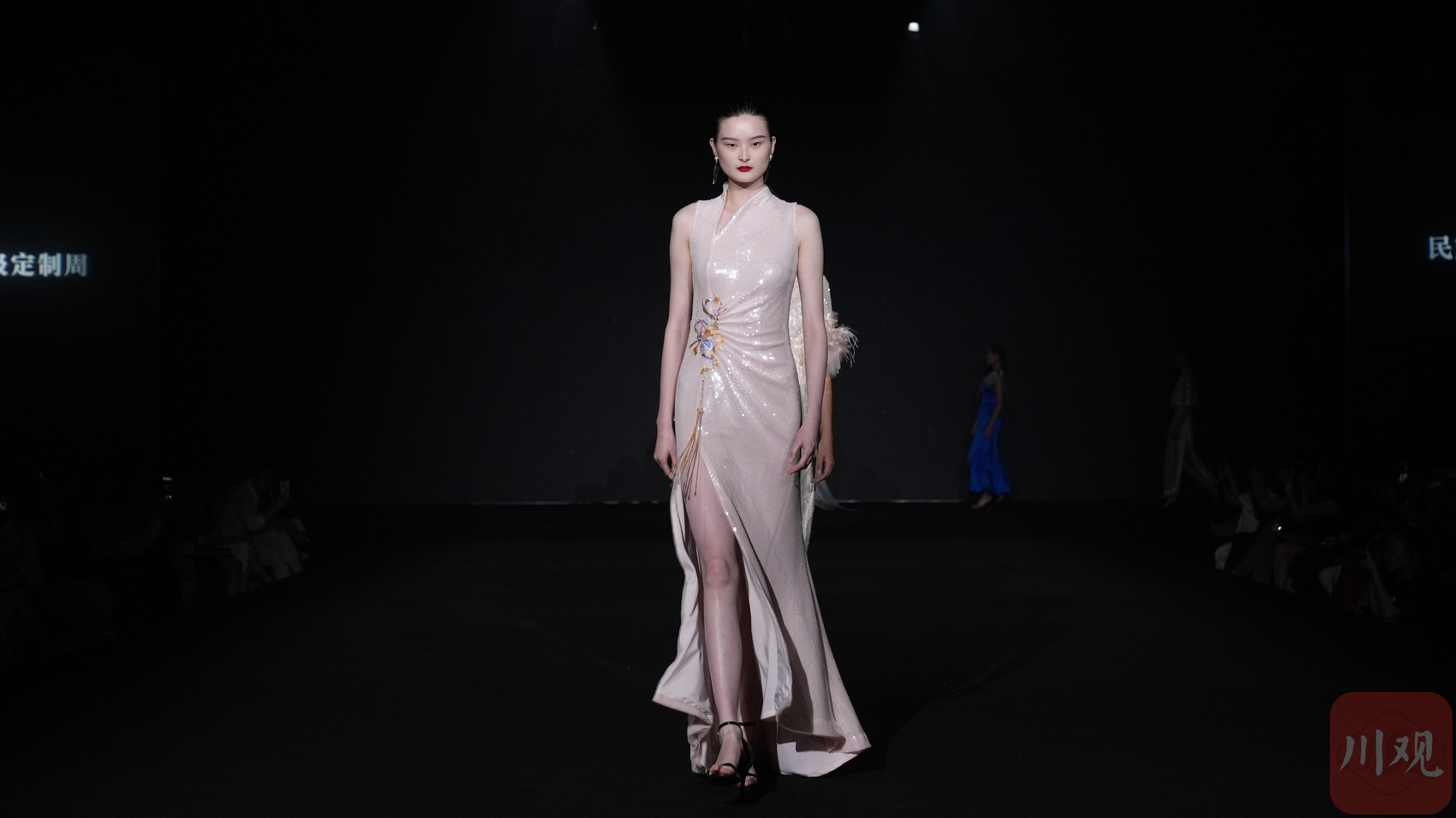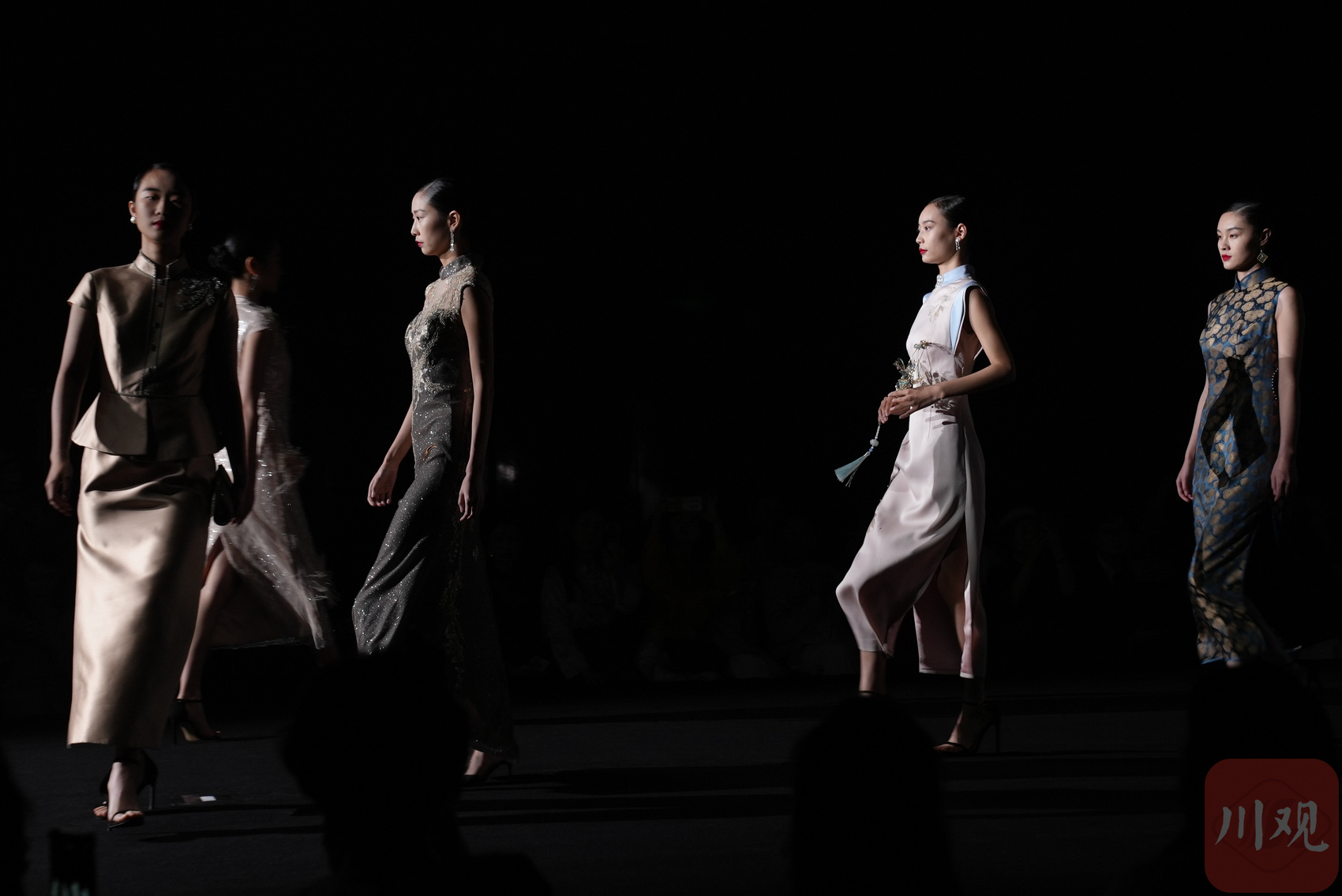 6月6日,在成都举行的一场高级定制周上,以旗袍、在地文化符号与蜀绣相结合的作品惊艳亮相。