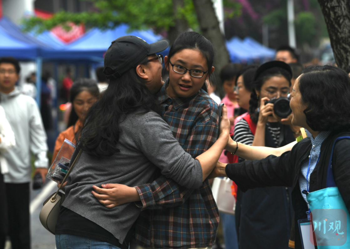 “来,再跟老师拥抱一下,别紧张,开始答题就好了,加油!”6月7日早上8点多,在川师附中高中部考点,随着各学校送考大巴的驶入,老师再次清点人数,目送考生们走进考场。