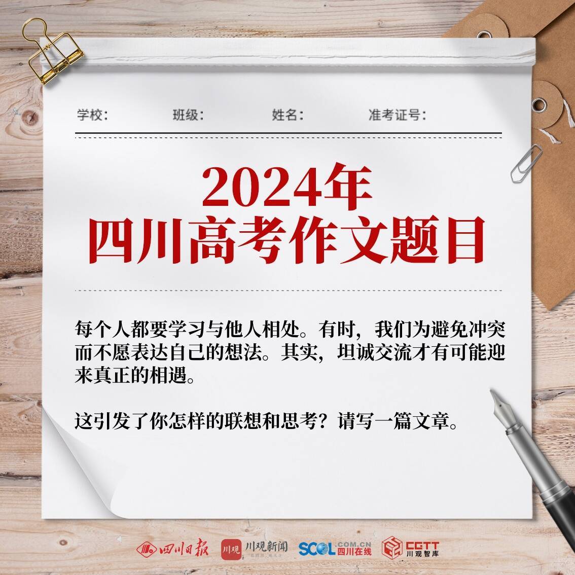 6月7日上午11点10分左右,在2024年普通高校招生统一考试四川师大附中等考点,记者从多位提前交卷的考生处获悉,今年四川高考作文题目是根据一段话自拟题目撰写。内容如下: