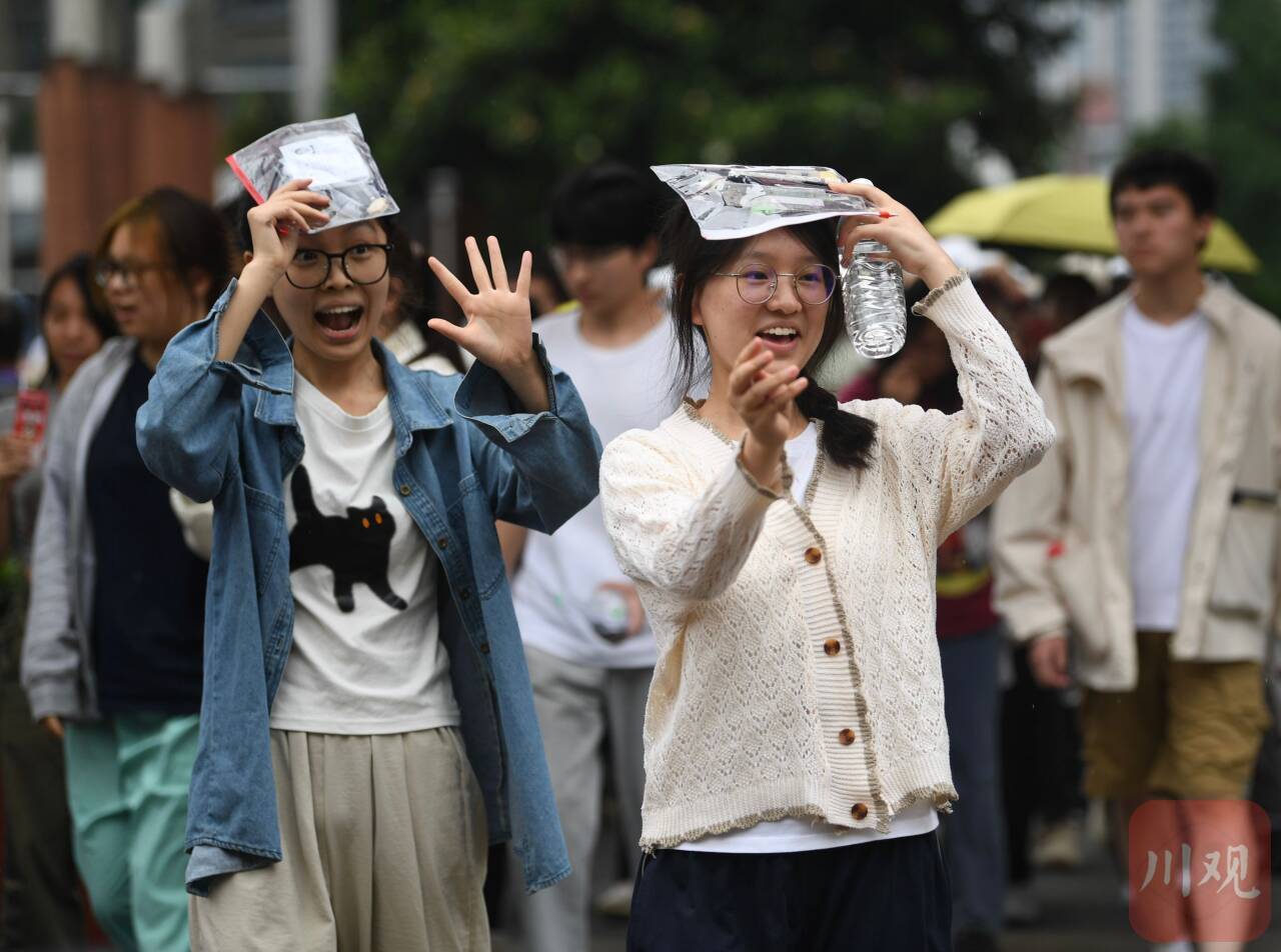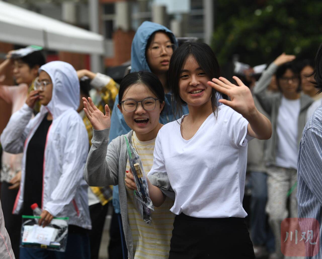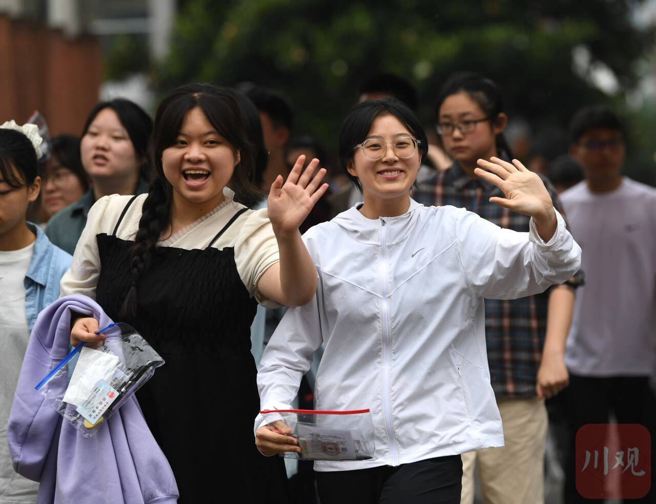 6月7日上午,伴随着高考第一科语文考试结束铃声响起,四川师大附中考点的考生面带笑容,走出考场。
