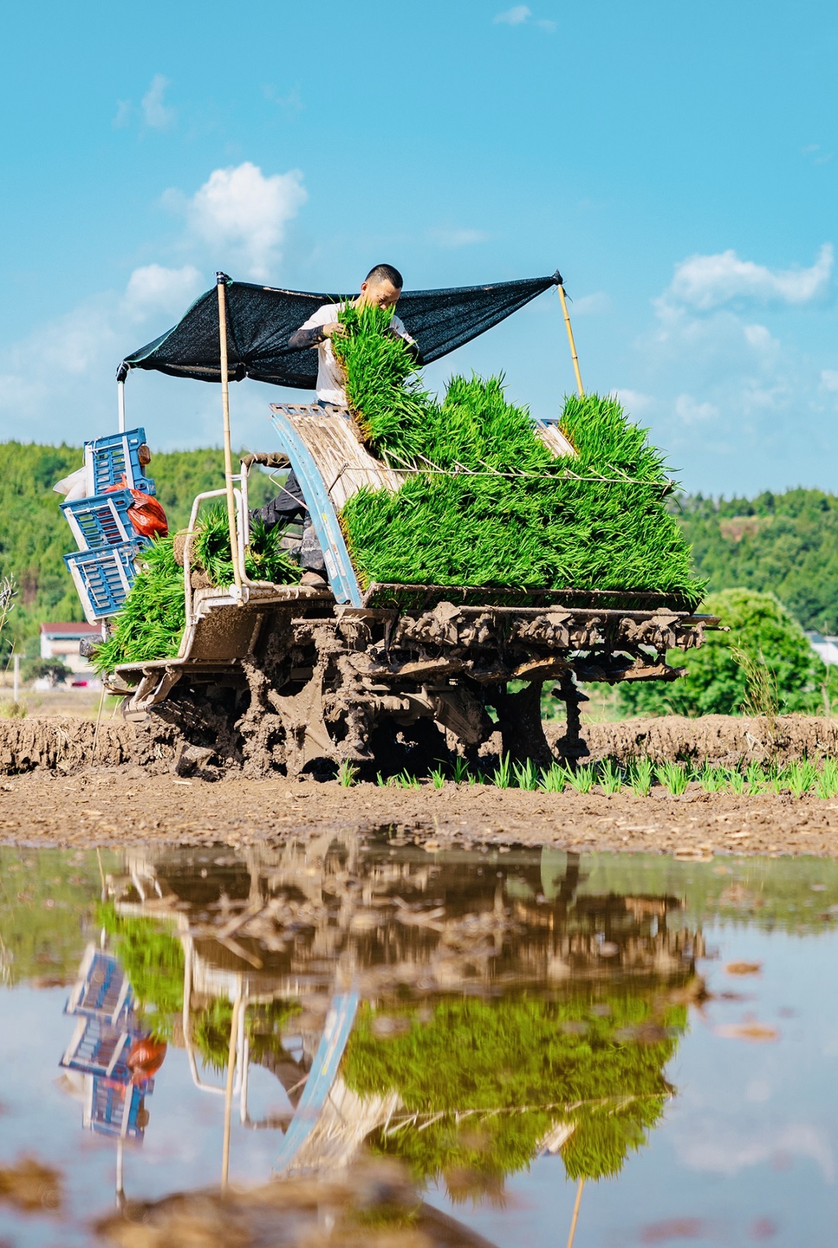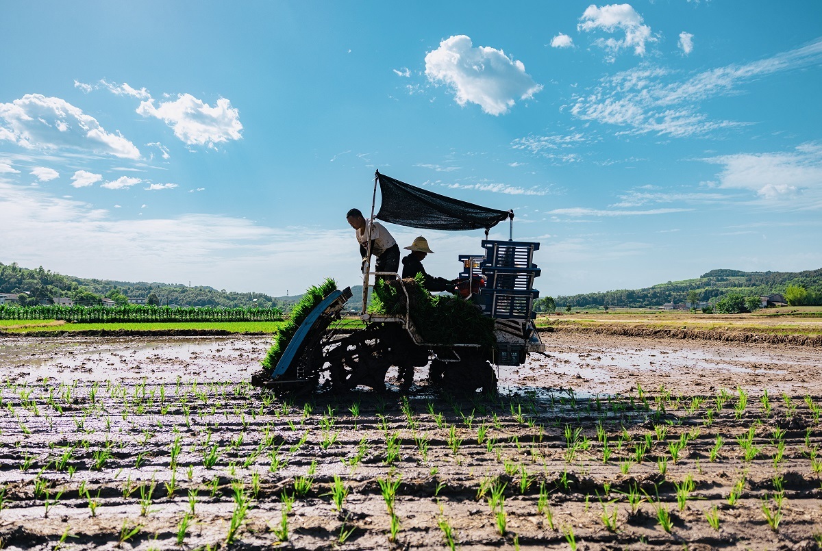6月6日,绵阳市游仙区仙鹤镇万亩稻田栽植接近尾声。