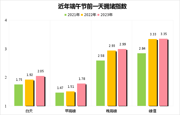 根据历史数据分析预测,今年端午节前一天(6月7日星期五,尾号限行)受高考接送考、通勤高峰及小雨天气等多重因素叠加影响,城区交通压力将显著增长,特别是下午时段至晚高峰期间,拥堵程度将较2023年同期有所上升,14:00时起,城区交通压力就提前开始增大,预计17:30~19:30达到拥堵峰值,压力将持续至22:30左右。