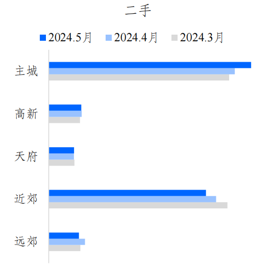 成都市住房和城乡建设局公布的房产交易数据显示,2024年5月,成都市二手房共成交19489套,成交面积186万㎡,套均面积95.71㎡;中心城区成交16795套,成交面积158万㎡,套均面积94.18㎡;郊区新城成交2694套,成交面积28万㎡,套均面积105.26㎡。
