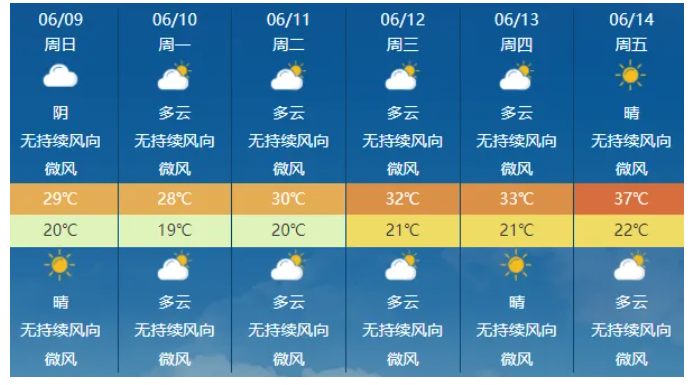 9日到10日,成都转为多云间阴天气,最高气温也将升至30℃、31℃。总的来说,成都假期天气不错,适宜出行。