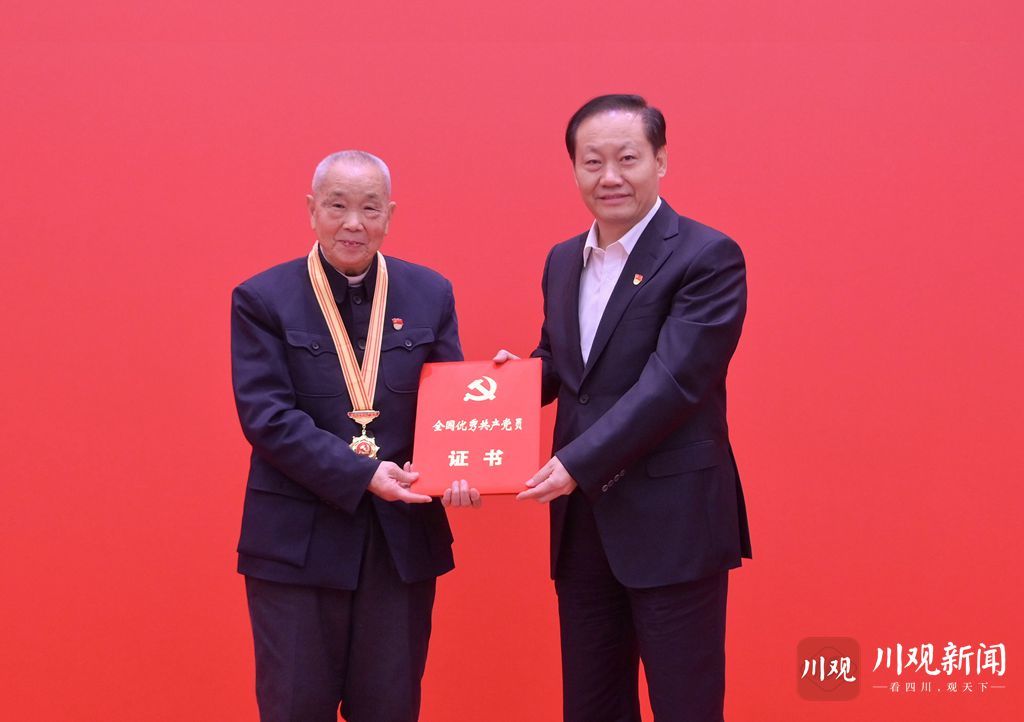 在热烈的掌声中,彭清华向周永开同志颁授“全国优秀共产党员”奖章、证书。