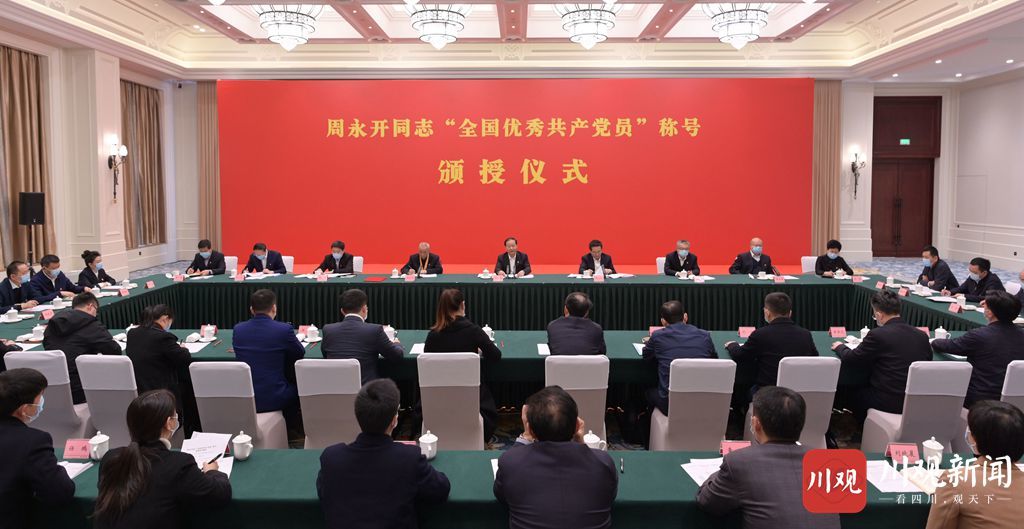 颁授仪式前,彭清华会见了周永开同志及亲属。省领导王雁飞、甘霖、王一宏、罗强,省委党建领导小组成员单位,省直有关部门(单位)和达州市负责同志,有关方面党员干部代表等参加颁授仪式。