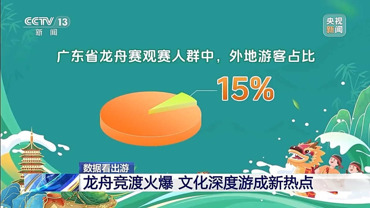 中国移动梧桐大数据通过各地龙舟赛相关热词搜索情况和话题活跃度以及游客数量,综合计算出了各地龙舟赛热度指数。通过全国龙舟赛热力图可以看出,最火的省份集中在广东、湖南、贵州、福建和江西。各地龙舟赛也吸引了众多外地游客,在龙舟赛最火的广东,外地游客占观赛人群总数的15%。“龙舟经济”带动各地文旅消费潜能不断释放。