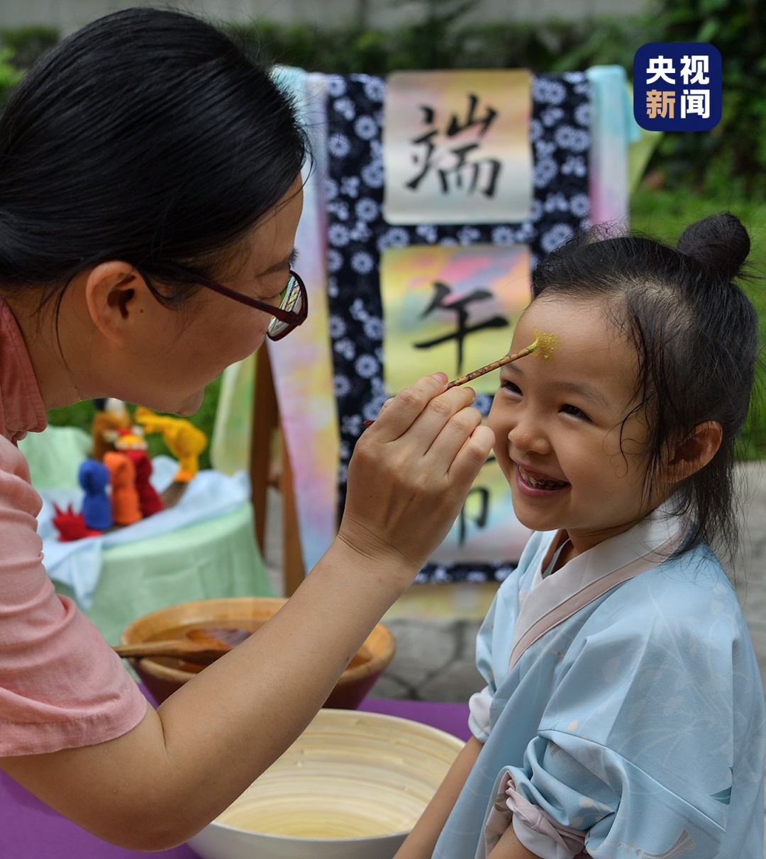 端午时节,家里的大人们会给孩子的额头用雄黄画一个王字,意在祈愿儿童健康成长。