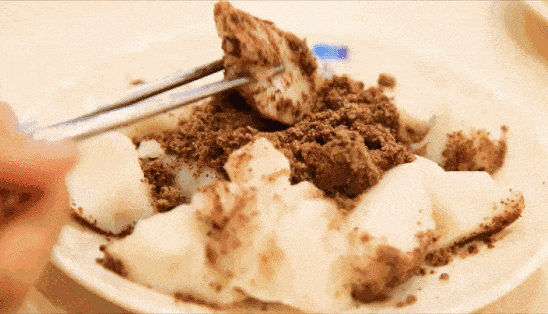 打糕是用蒸熟的糯米饭或黏黄米捶打而成。新鲜出炉的打糕切成小方块,可以蘸上黄豆面、白糖或红小豆馅食用,也可以冷冻后裹上蛋黄入锅油炸,筋道有嚼劲。