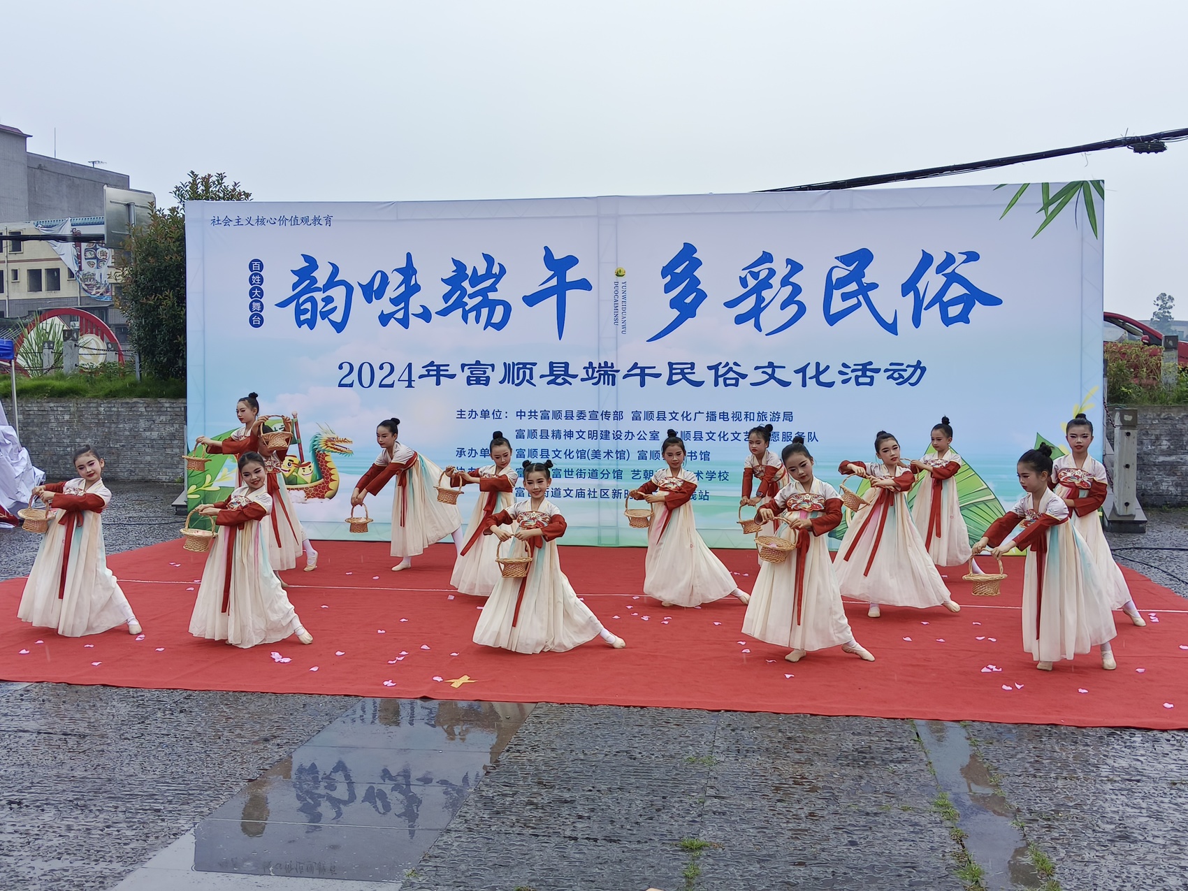 随着端午氛围日渐浓厚,原本宁静的文庙广场也热闹起来。当天,“韵味端午·多彩民俗”2024年富顺县端午民俗文化活动在文庙广场上举行,以歌舞表演、非遗展示、包粽子比赛等精彩活动丰富群众精神文化生活,传承和弘扬中华优秀传统文化,增强文化自信。