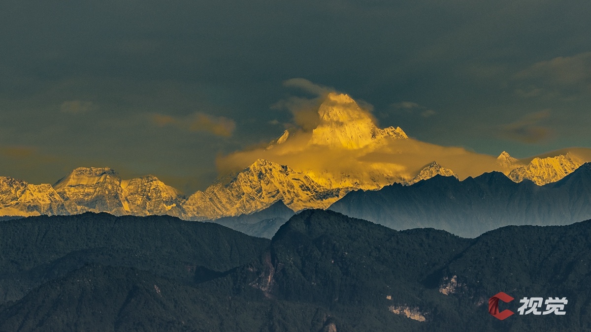 6月11日清晨,金色的幺妹峰披着“纱巾”惊艳亮相。(C视觉摄影师 田相和 摄)