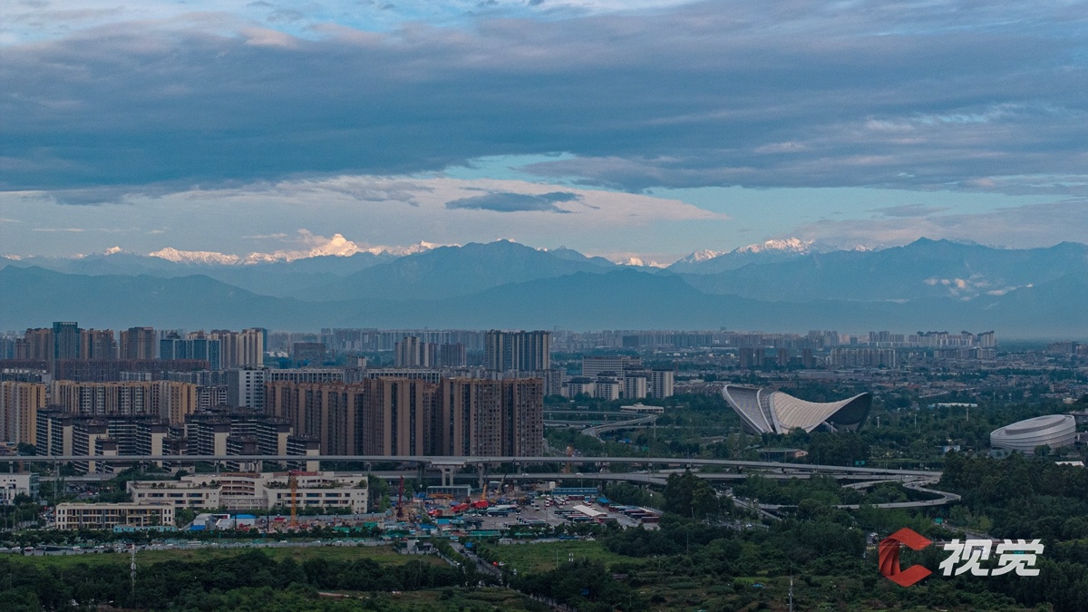 6月11日,定格雪山下的公园城市——成都。(C视觉摄影师 王治 摄)