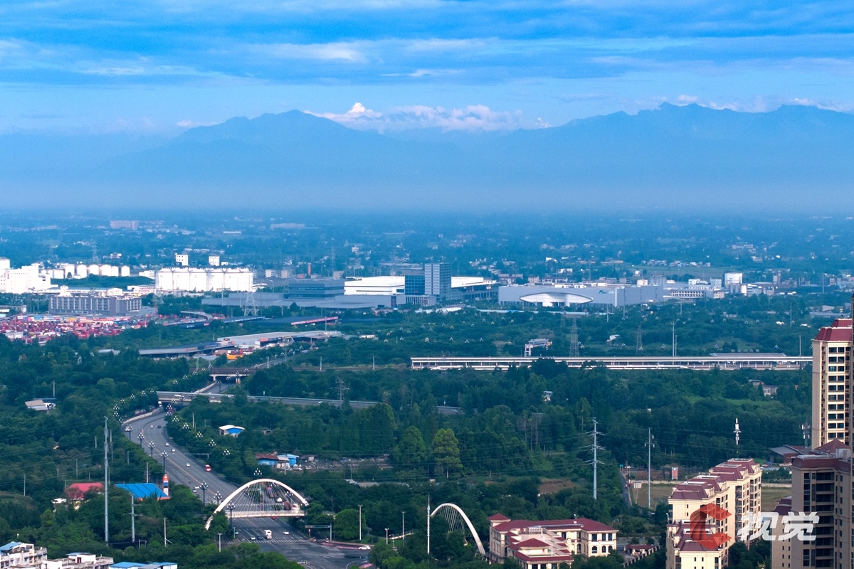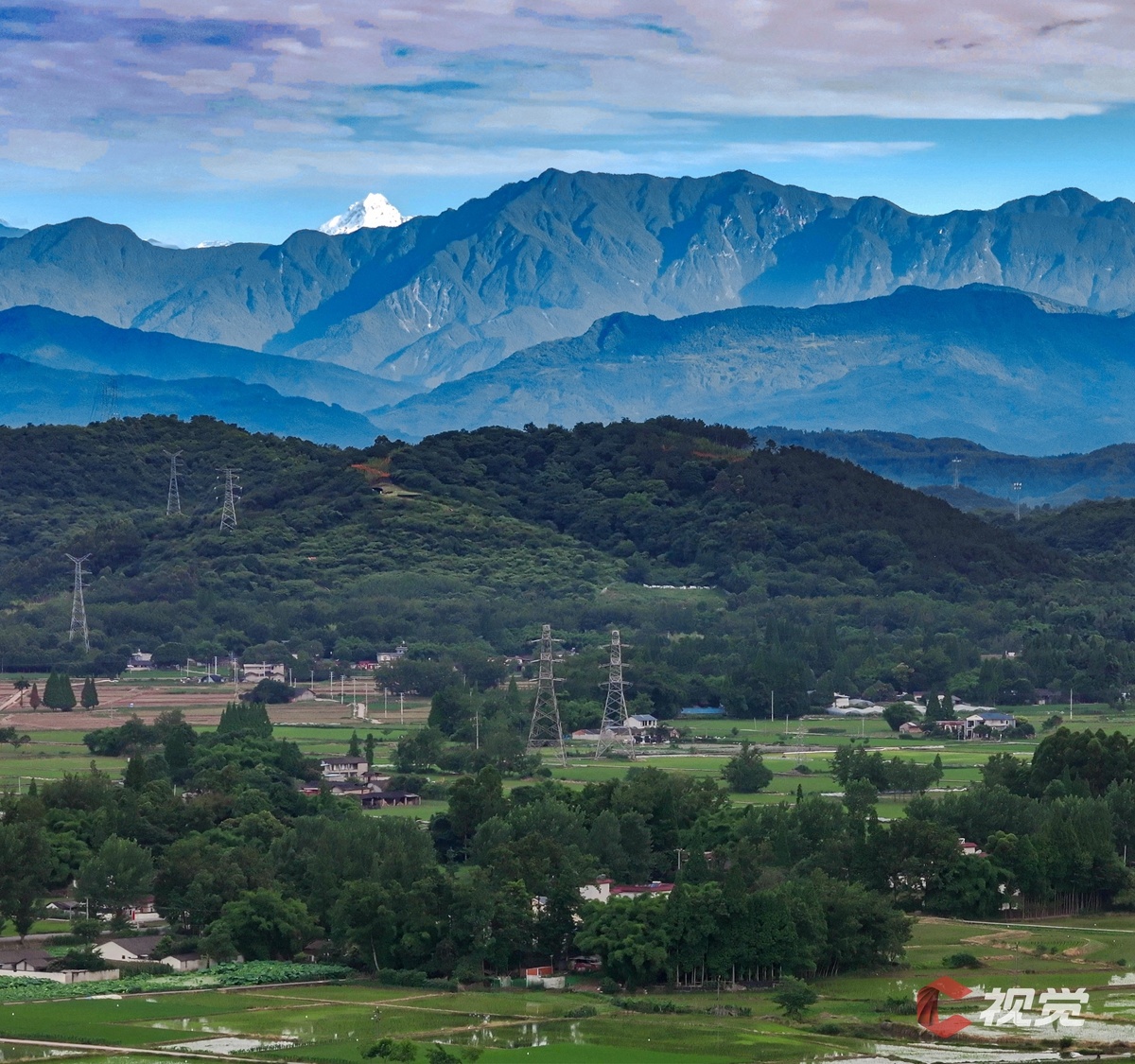 6月11日,在崇州市向西眺望,远处的雪山清晰可见。(C视觉摄影师 李旭 摄)