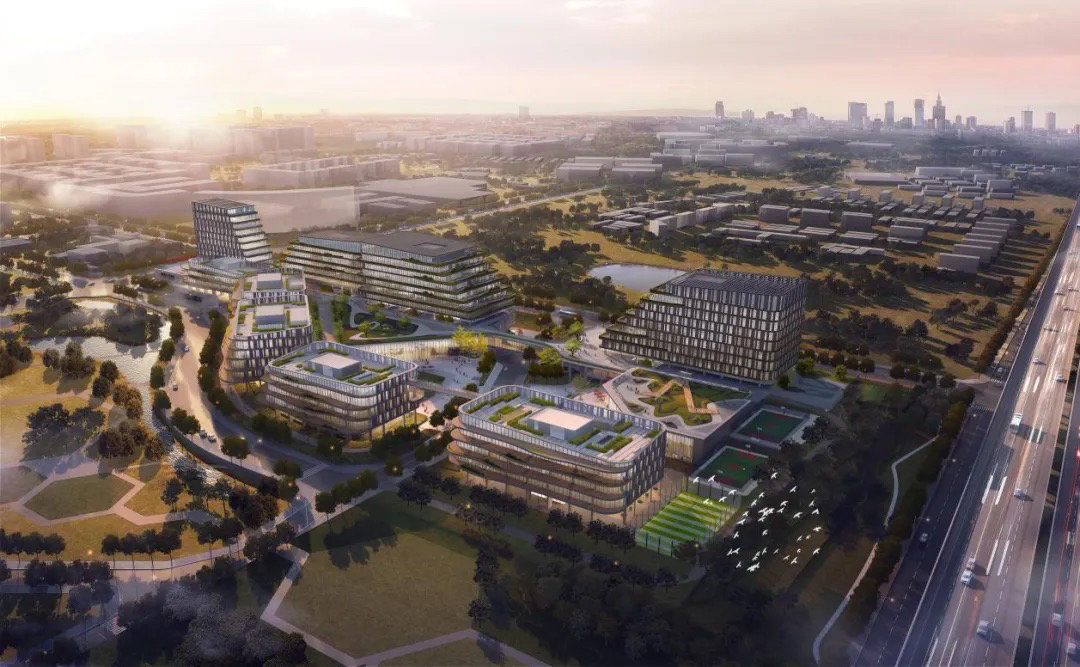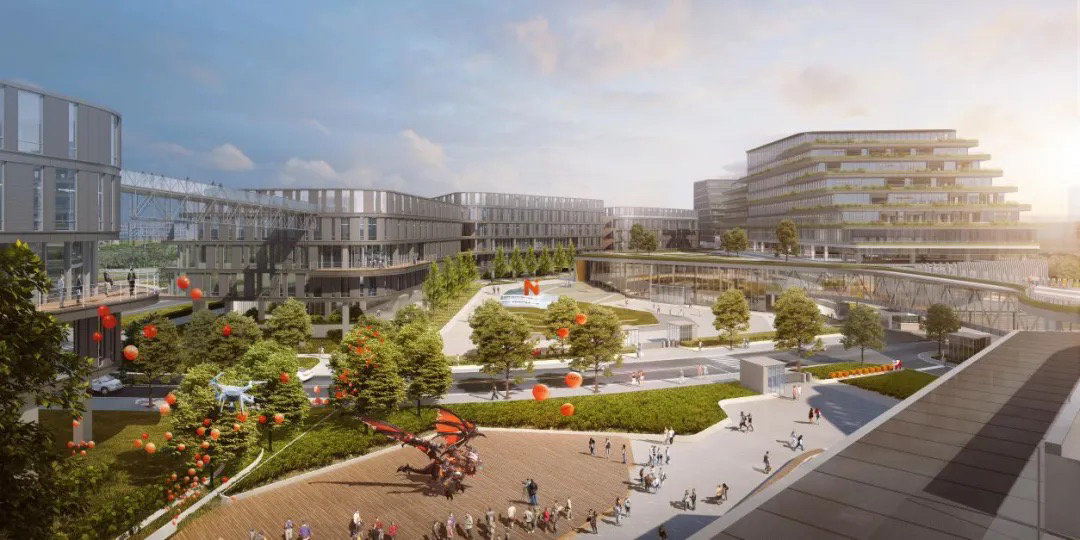 新川网易成都数字产业基地项目于2020年8月签约落地成都高新区,投资总额约130亿元,选址新川创新科技园。项目净用地面积95.73亩,总建筑面积约16.53万平方米,设置有科研办公用房、会议室、展厅、商业、多功能馆、园区配套食堂等。在设计上,遵循网易在全国各地园区建筑形象的统一风格,充分尊重使用方需求,结合场地地形、环境、气候特征创造性地提出综合服务轴,串联起园区内特色餐饮、大众食堂、咖啡简餐、低卡食堂等功能,实现园区办公环境优化迭代,打造体现成都公园城市特点的高品质产业载体。同时设置露天剧场,提供展示、演艺、宣传等功能,进一步提升园区活力。