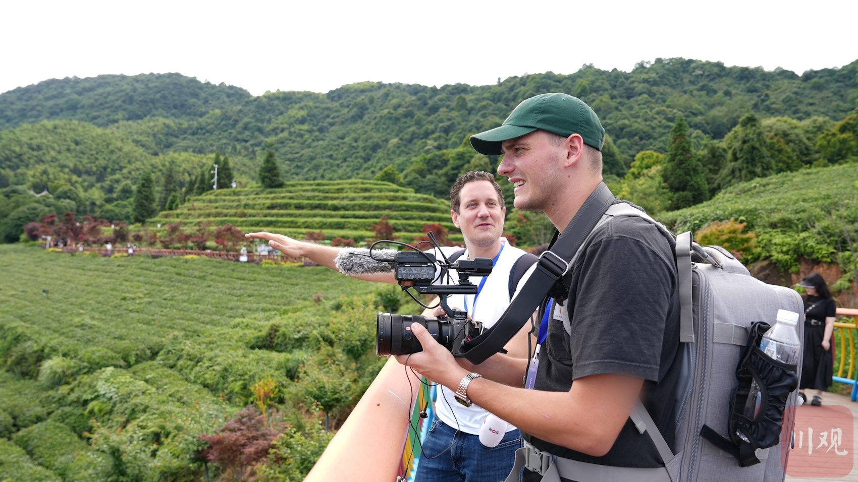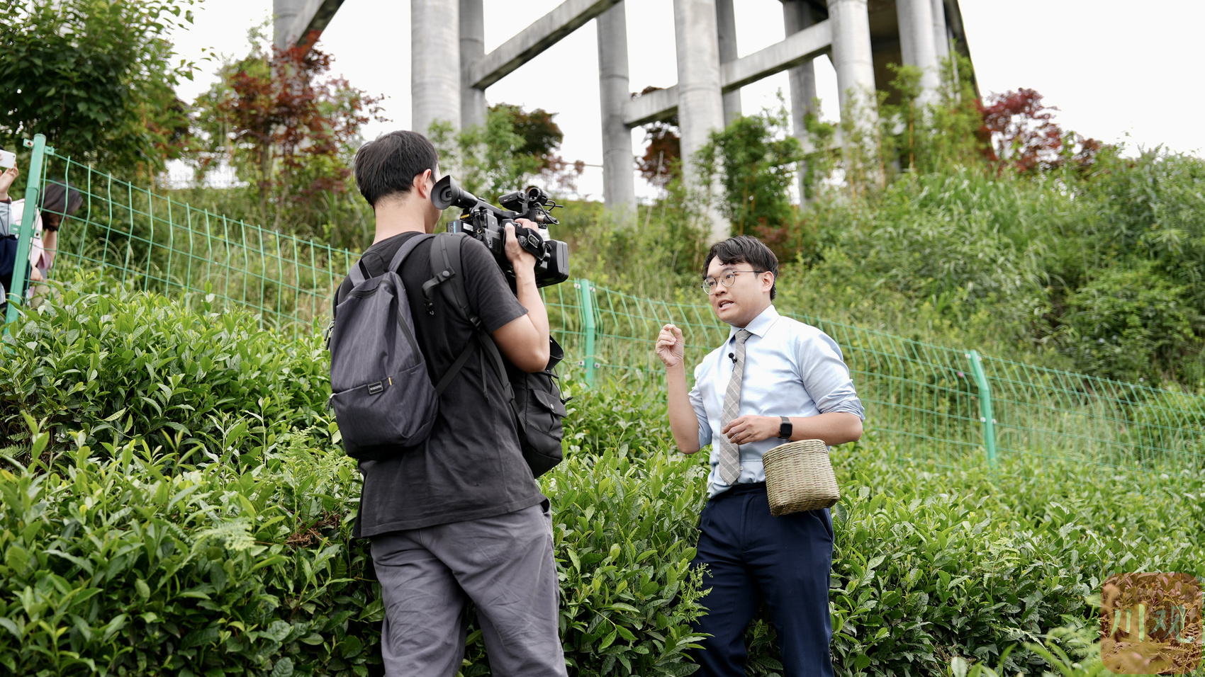 媒体记者在茶园出镜讲解