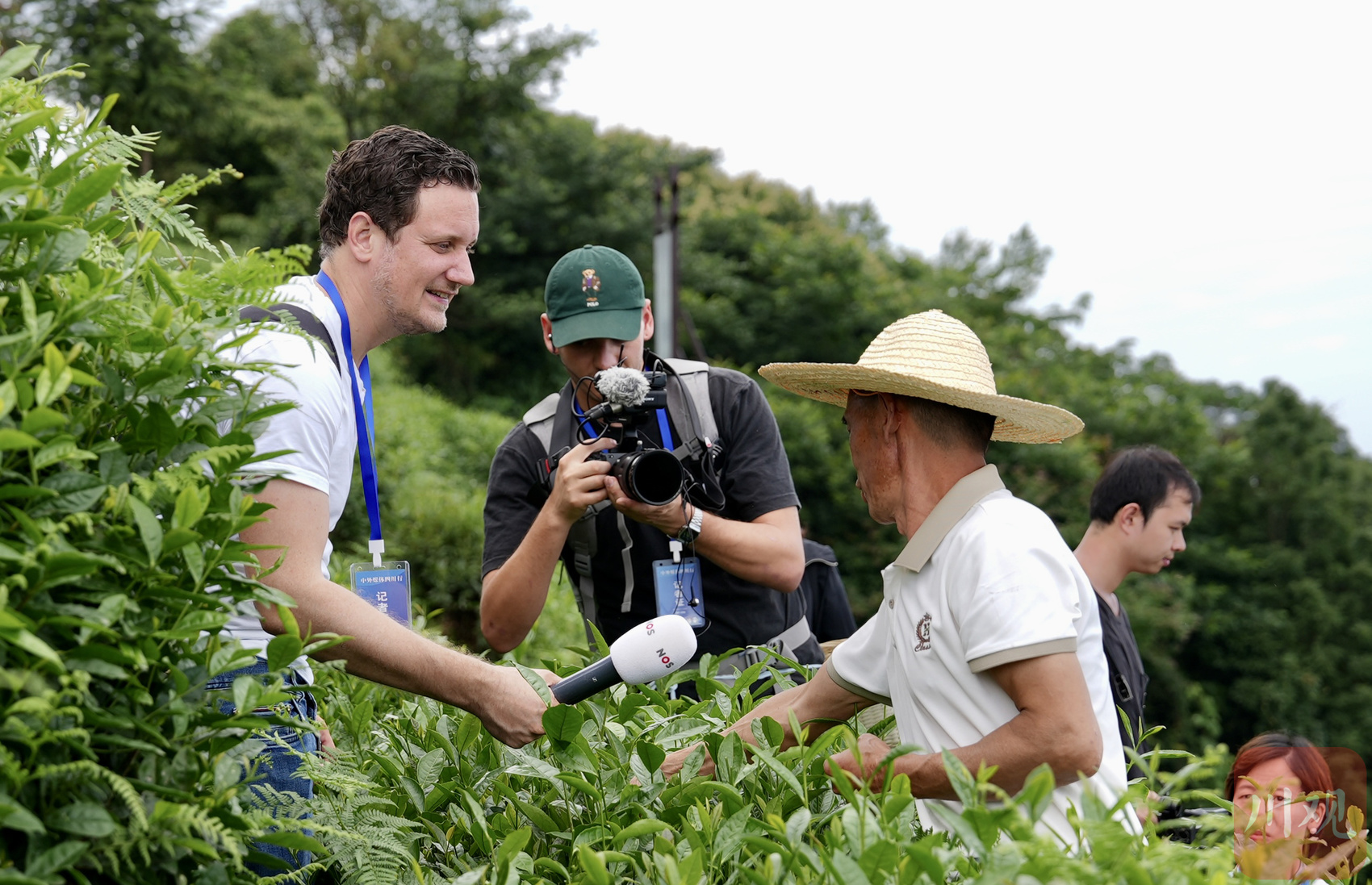 中外记者在蒙顶山原真性保护茶园采访