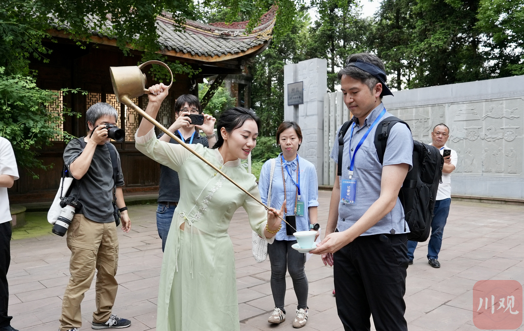 茶艺师为媒体记者展示茶艺