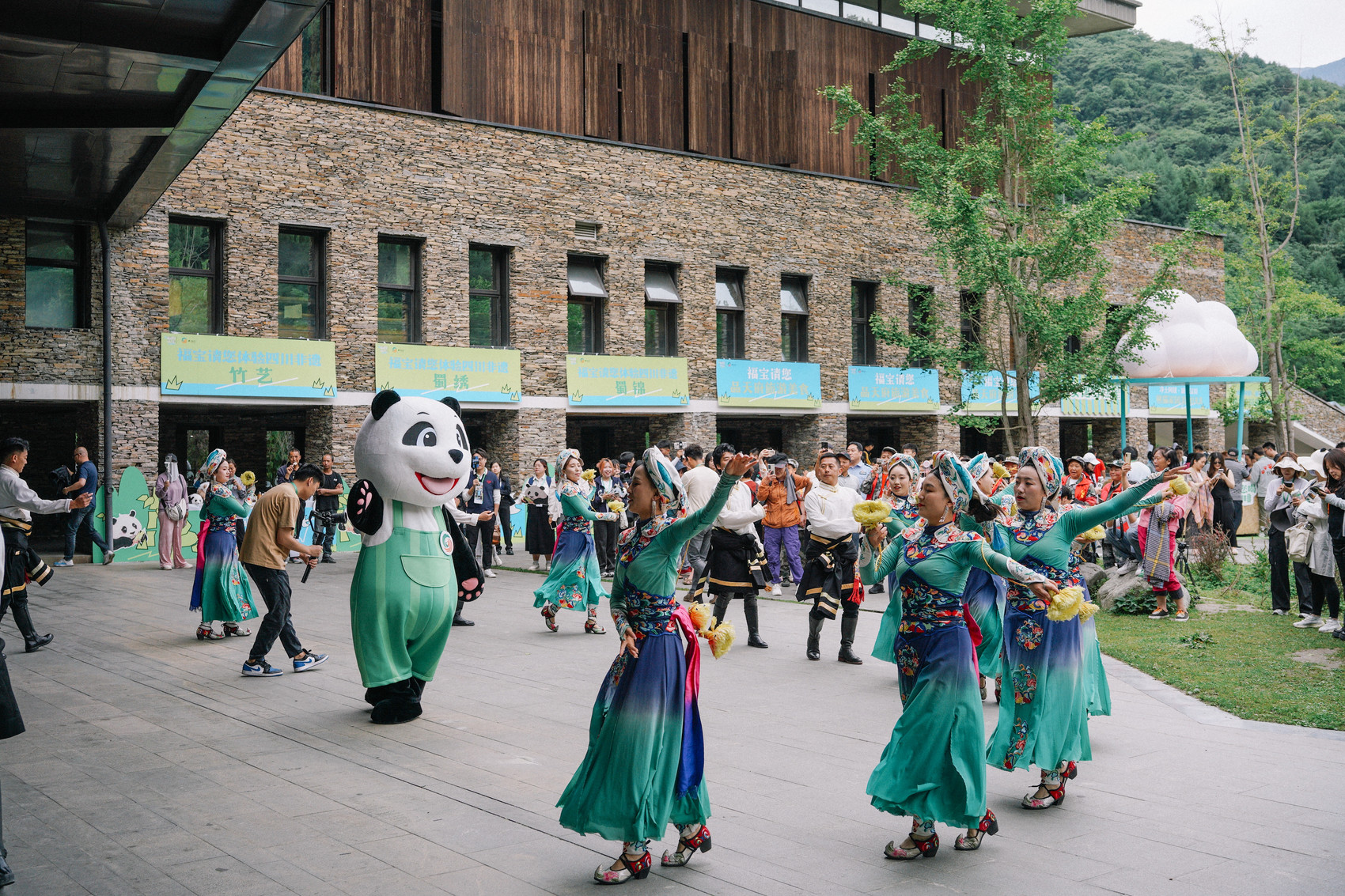 6月12日,在众多“熊猫粉”期盼中,旅韩大熊猫“福宝”结束过渡适应期,在中国大熊猫保护研究中心卧龙神树坪基地第一次面向公众见面。开放日现场,在神树坪石碑广场,四川文旅特别准备的以“福的市集”为主题的市集活动举行,四川文旅吉祥物“安逸熊猫”率队带来了藏羌风情表演和诸多四川好物展示,邀请更多人看大熊猫、游四川。