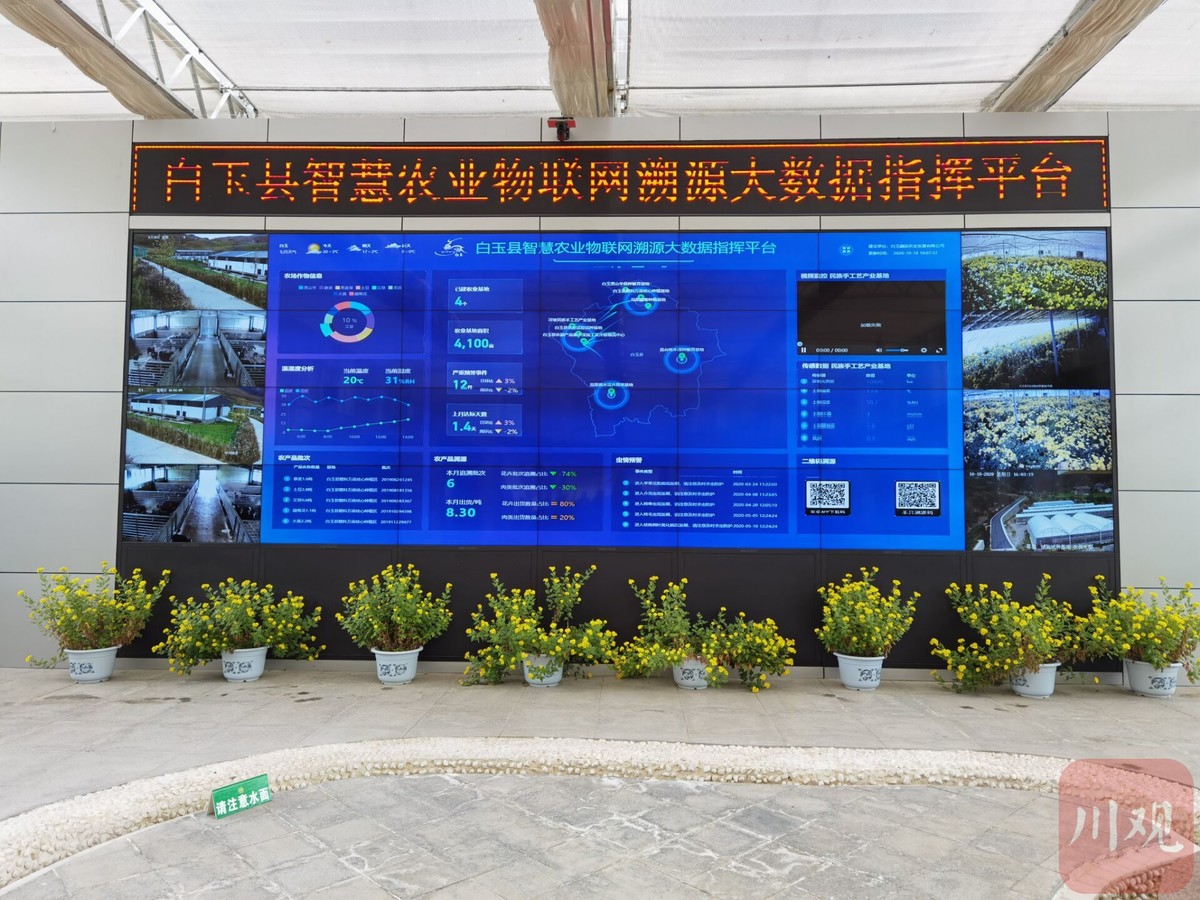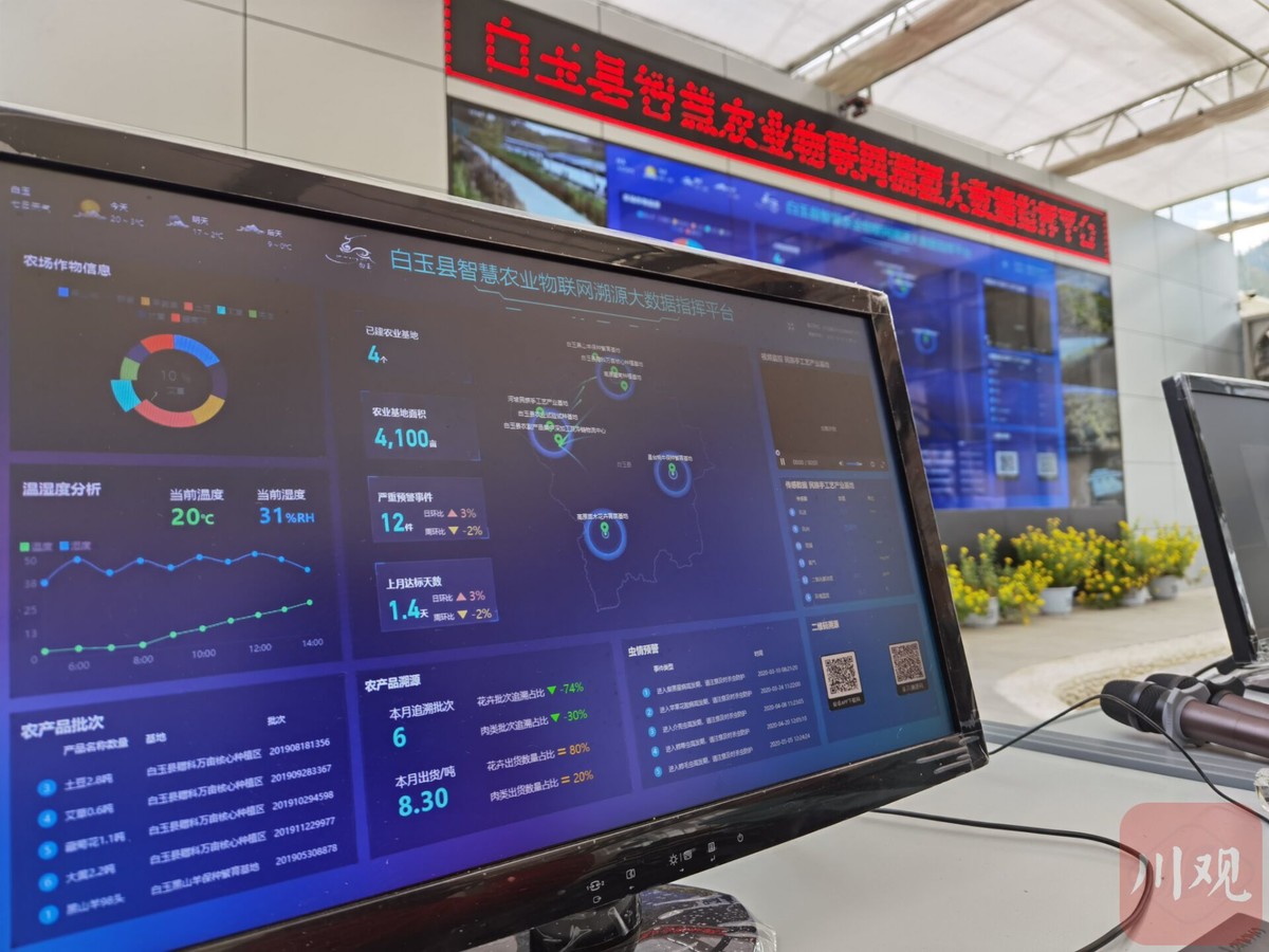 智慧农业如何在白玉形成闭环?李卫东说,在乡镇种植基地,都布有气象、墒情、病虫监测仪等,数据最终汇集到指挥平台,实现全程安全管理,完成企业及农产品信息库的组建、管理、查询、分配,并设置了防伪条码、二维码追溯等功能。