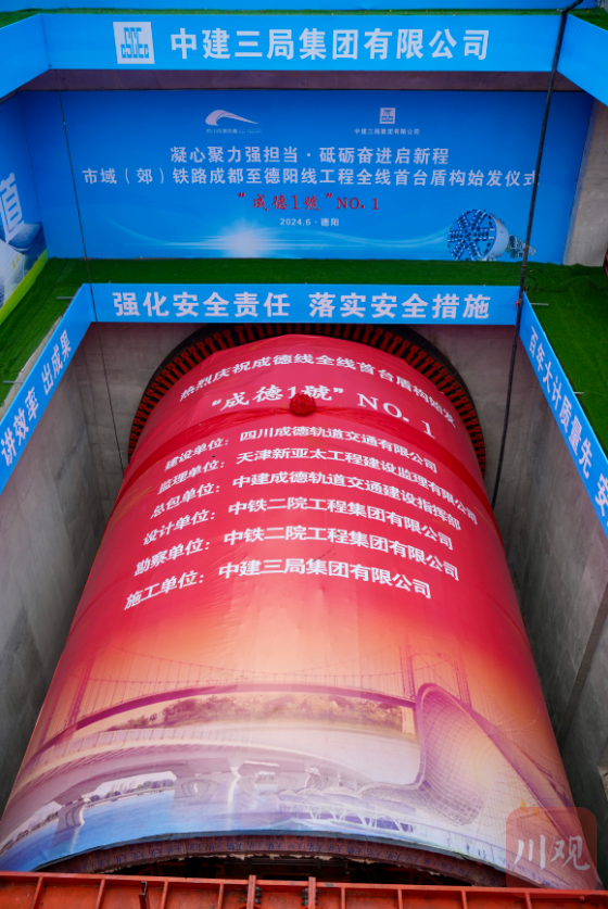 6月13日上午,在位于德阳市的德阳南站-四川建院站明挖区间,成德眉资同城化的重要交通基础设施项目——市域(郊)铁路成都至德阳线(以下简称“成德线”)首台盾构成功始发,标志着全线正式进入盾构施工阶段。此次节点较计划工期提前了32天实现,为项目建设按下了“加速键”。