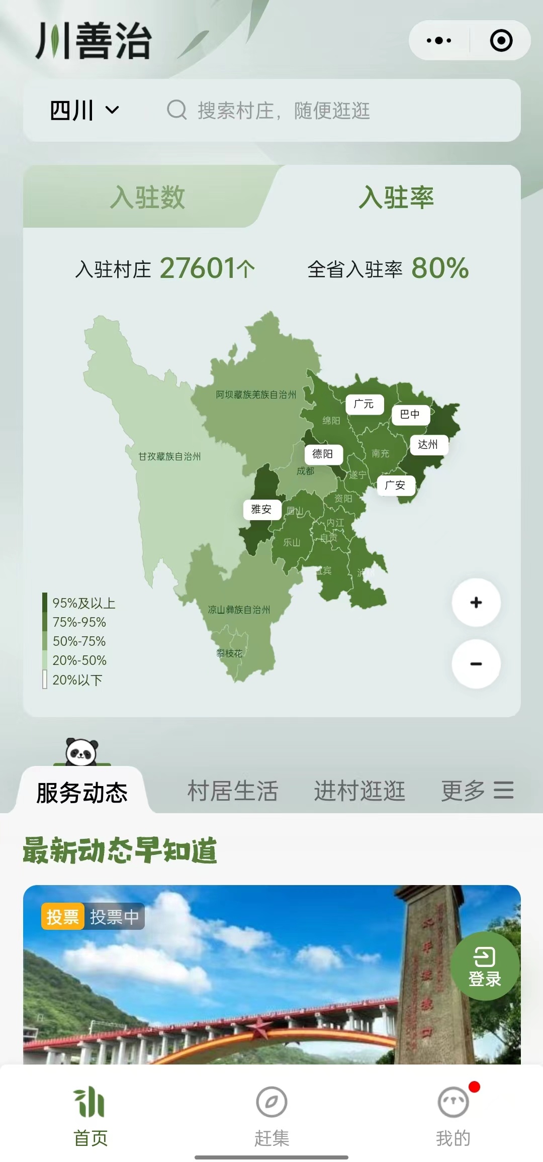 为深入推进乡村治理现代化,落实省委、省政府关于“川善治”数字化乡村治理平台建好用好的决策部署,6月12日下午,农业农村厅召开“川善治”平台推广运用形势分析会。截至记者发稿时,“川善治”平台已入驻全省村庄27601个,入驻率高达80%,使用平台的村民达到736万人,占全国使用“村级服务平台”村民数的58%。
