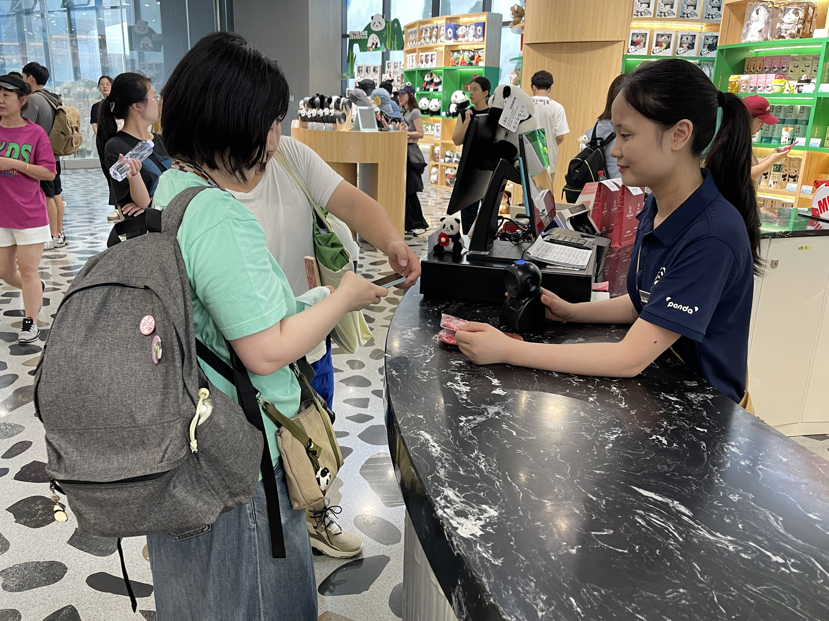 “滴!”伴随扫码支付的清脆声响,参与此次“‘你好!中国·安逸四川’日本旅行商走进四川暨大熊猫‘香香’再会之旅”活动的日本旅行商代表二木繁美将选购的数件熊猫纪念品从容收入行囊。
