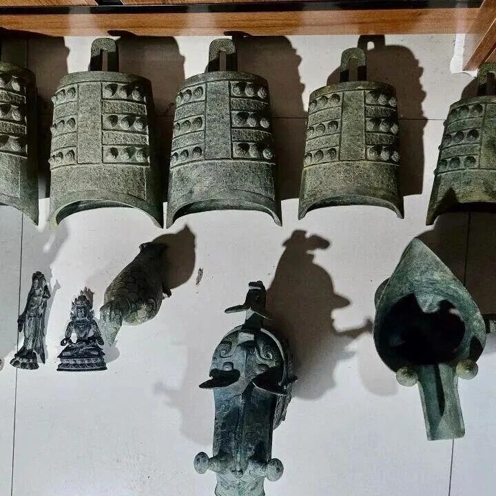 ▲ 出土于临汾市曲沃县晋侯墓8号墓的西周晋侯稣钟,分别藏于上海博物馆、山西博物院。共16件,可分为两组,每组8件,大小相次,排编成两列音阶与音律相谐和的编钟,被列为《首批禁止出国(境)展览文物》。