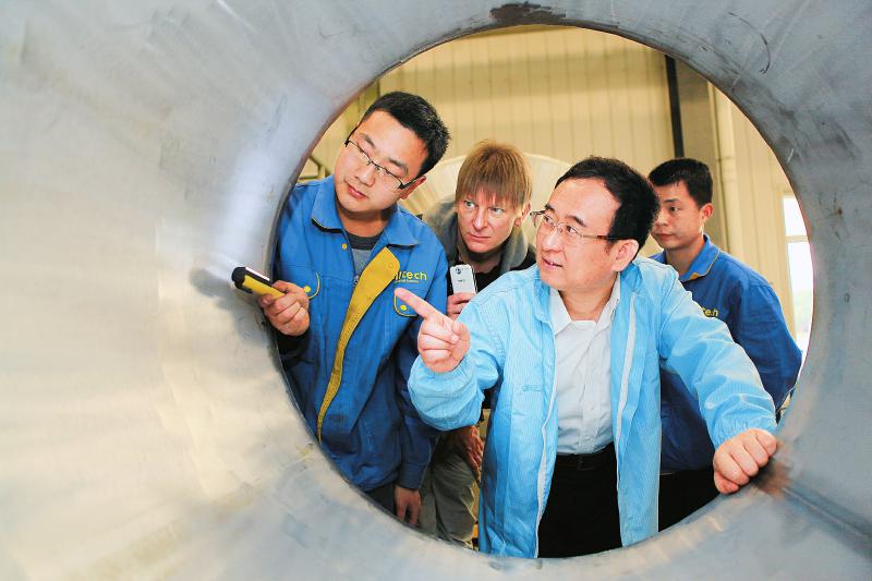 “千人计划”专家邹学明(中)在企业现场技术指导。(省人才办供图)