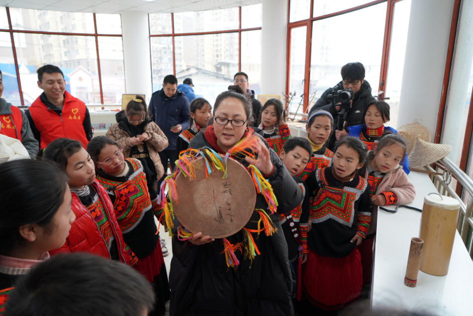 青少年在雷波县青少年传统文化传承基地了解民族乐器